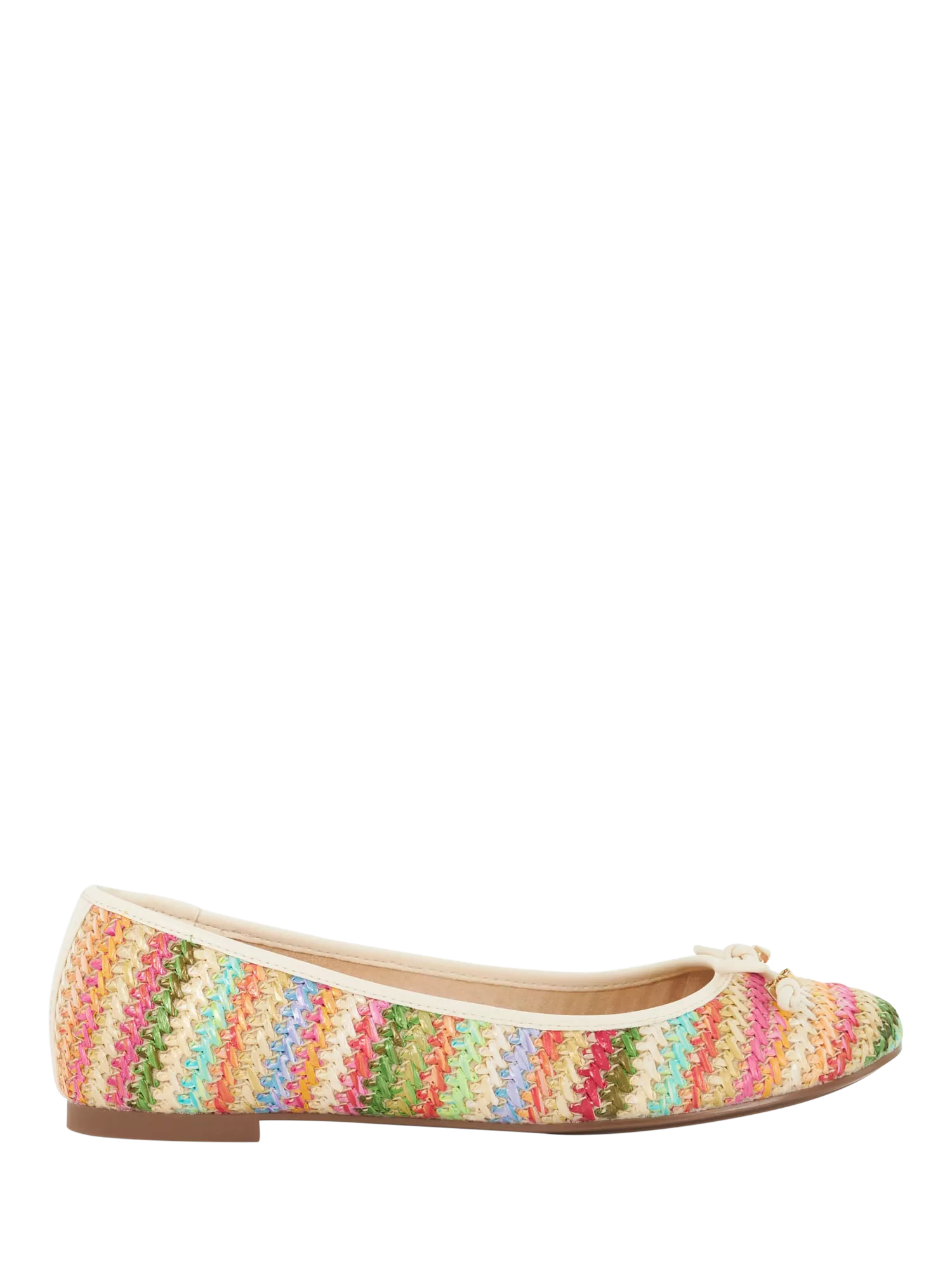 Brightening up your look, this pair of ballerina pumps from Dune comes in a soft, yet durable fabric in a woven multi-coloured stripe design.