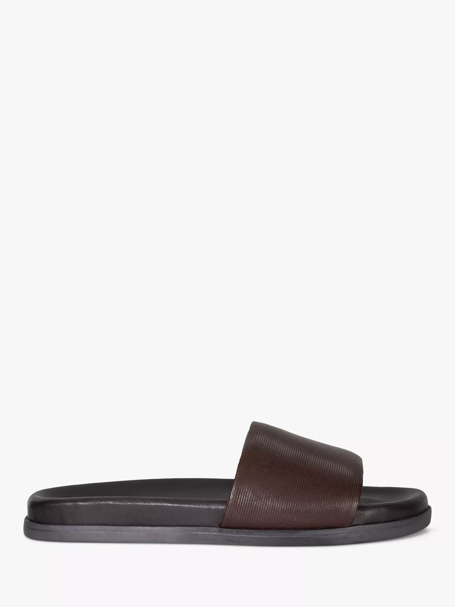 Dune LondonInclines Linear Emboss Slides, Dark Brown-leather