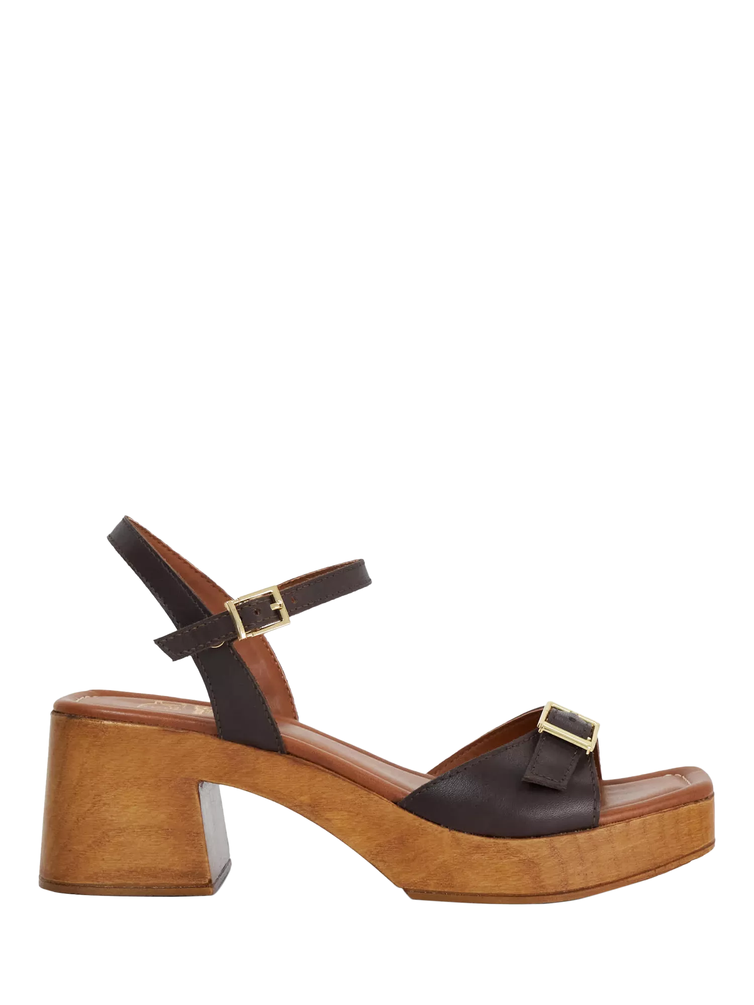 Tapping into this season's clog trend, Jeane rests on a wood-effect platform heel for all-day-comfort. Crafted from soft leather the adjustable ankle strap and front strap ensures the perfect fit.