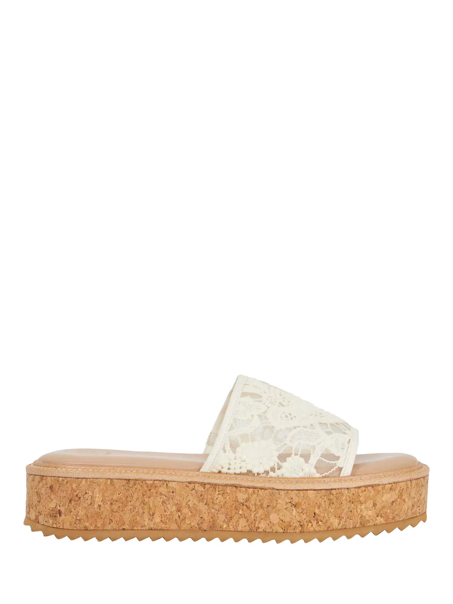 Hit the refresh button on your sandal selection and opt for Luffit. Crafted from textured lace, this open-toe style is sure to become a staple in your warm-weather wardrobe. Featuring a chunky cork flatform sole, it adds just the right amount of lift to your look.