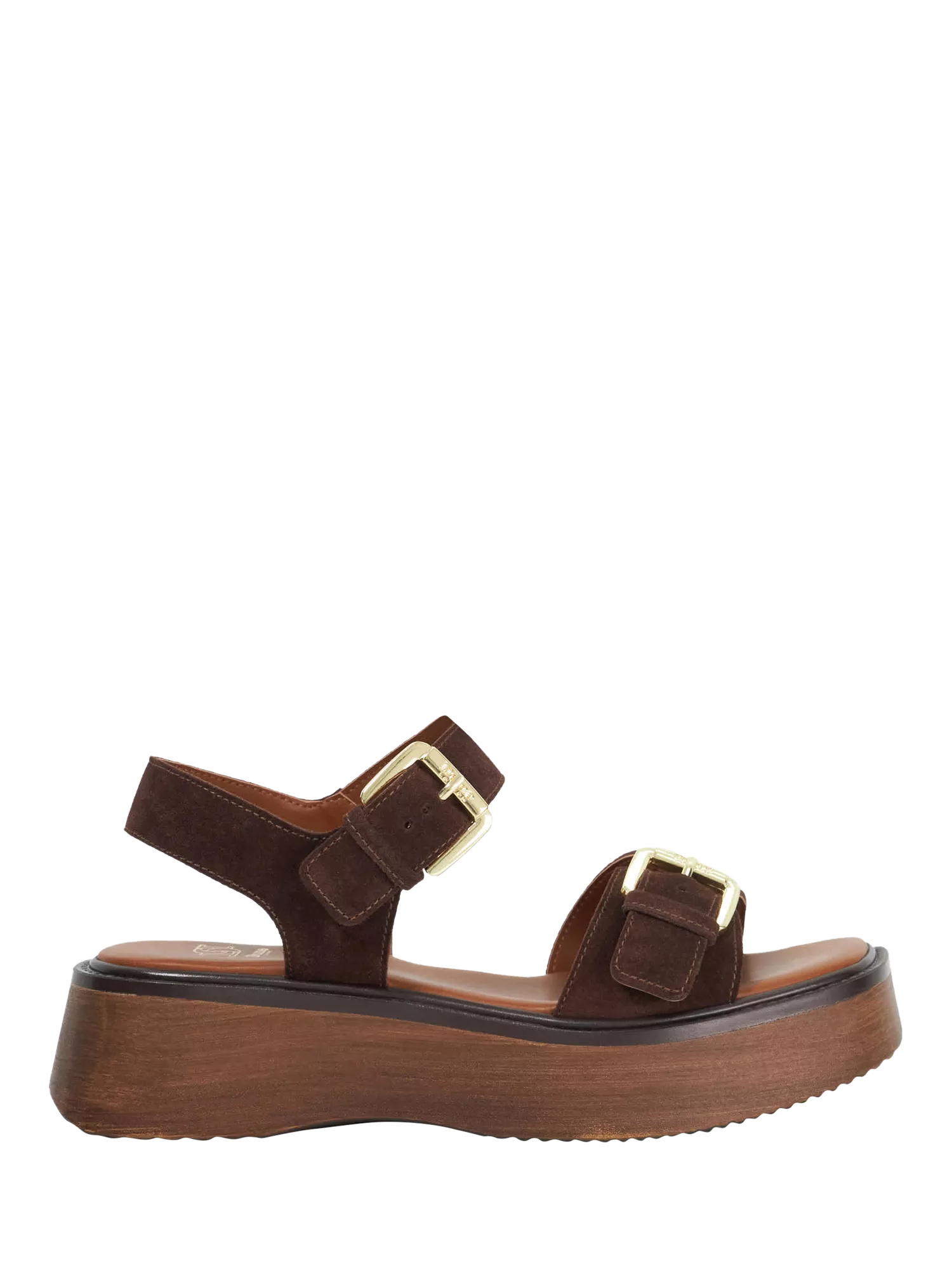 Crafted from suede, the upper of this square-toed silhouette features wide straps with large buckles. Set on a flatform sole, this versatile sandal pairs equally well with everything from denim to sundresses and is finished with a lined footbed that promises all-day comfort.