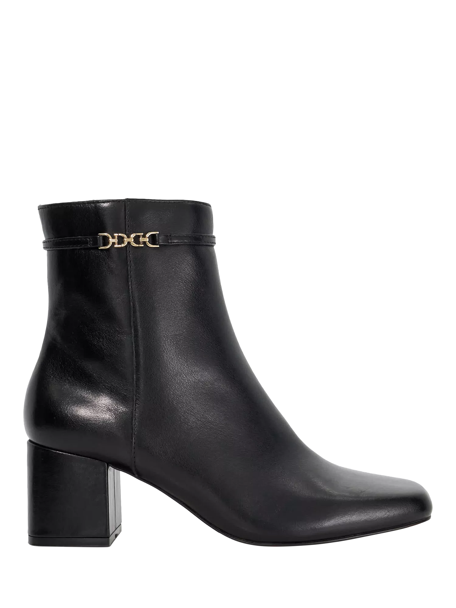Leather ankle boots. The mid block heel adds height without sacrificing comfort, while the zip fastening ensures easy wear during busy days at work or smart occasions.