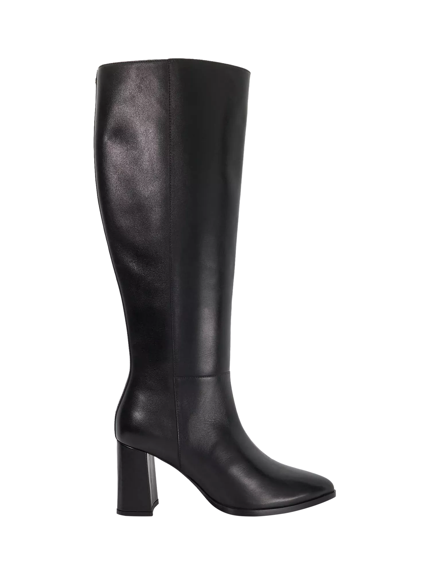 Leather knee boots from Dune London. The pointed toe and mid block heel give you all-day comfort and sharp style, perfect for making an impression wherever you go.