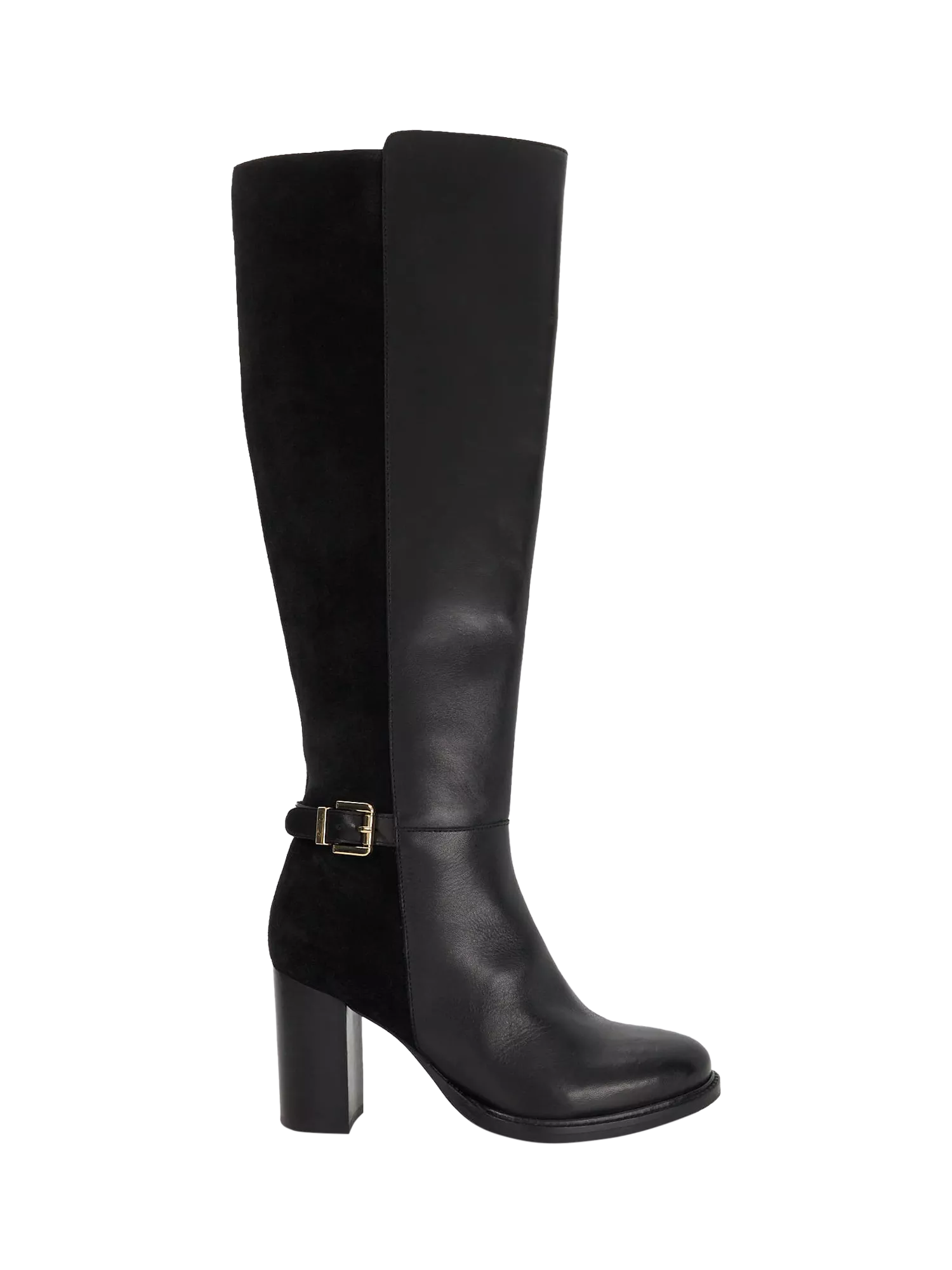 Knee-high boots from Dune London, crafted with a leather upper, round closed toe, and supportive block heel. The zip fastening ensures ease, while the versatile design fits seamlessly into your day or evening plans.
