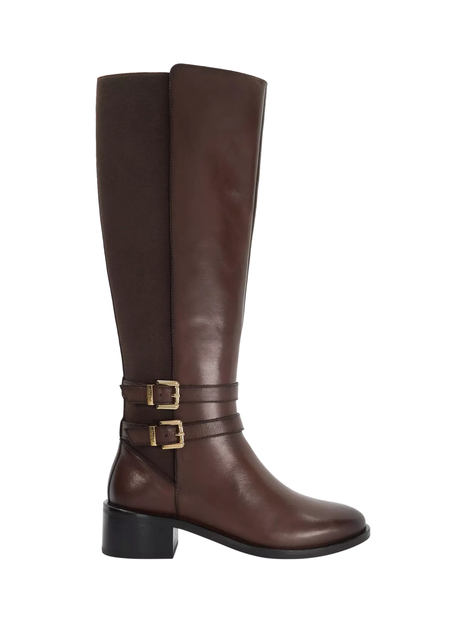 In a sleek style that'll bring in all the compliments, this pair of knee-high boots from Dune is made with longevity in mind, thanks to its quality leather uppers. Resting on a block heel, they are finished with a rounded toe.