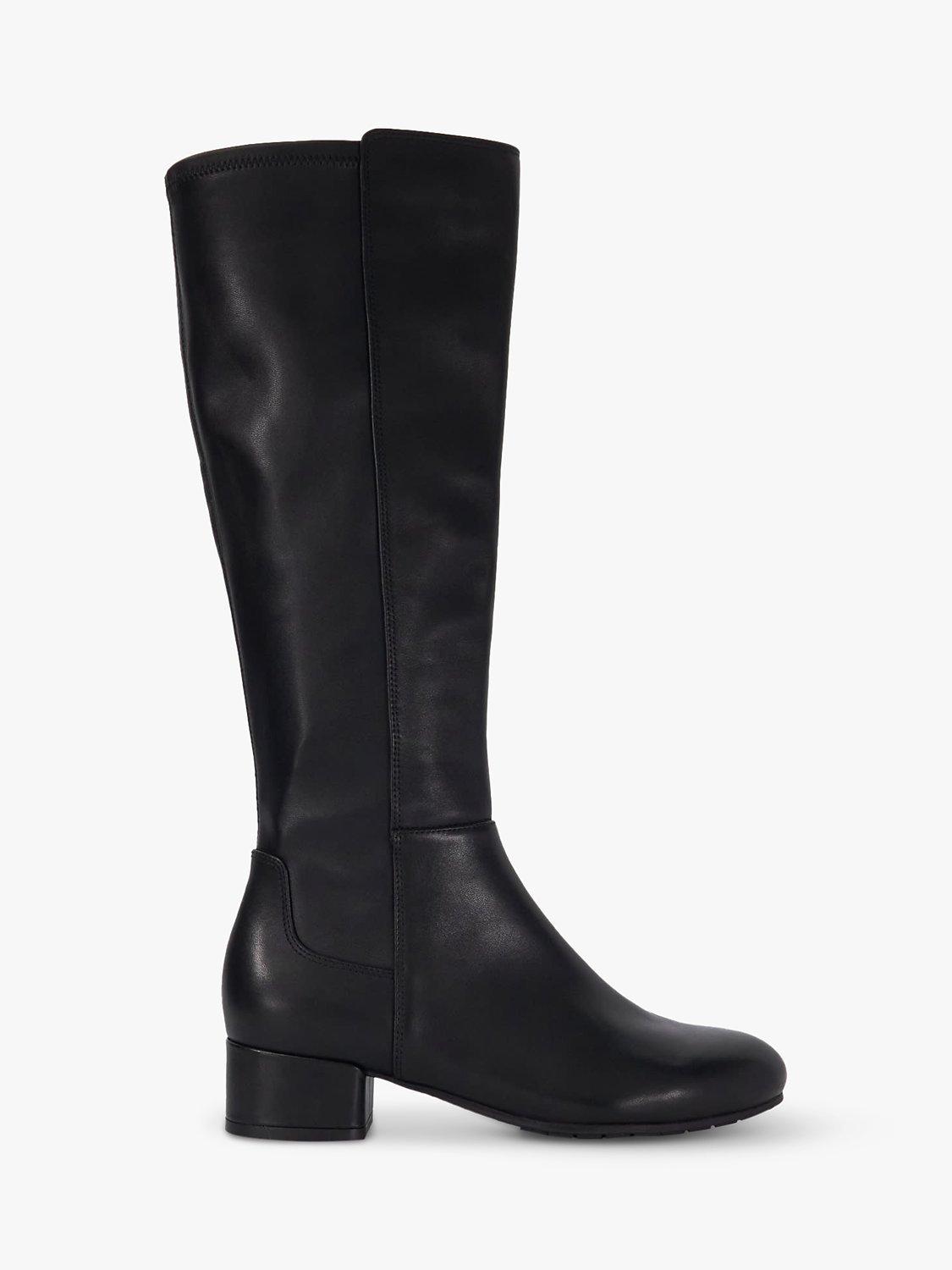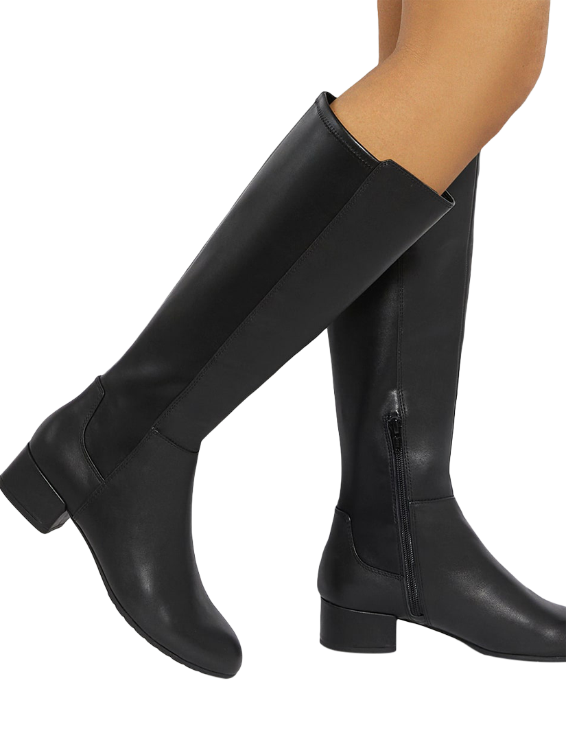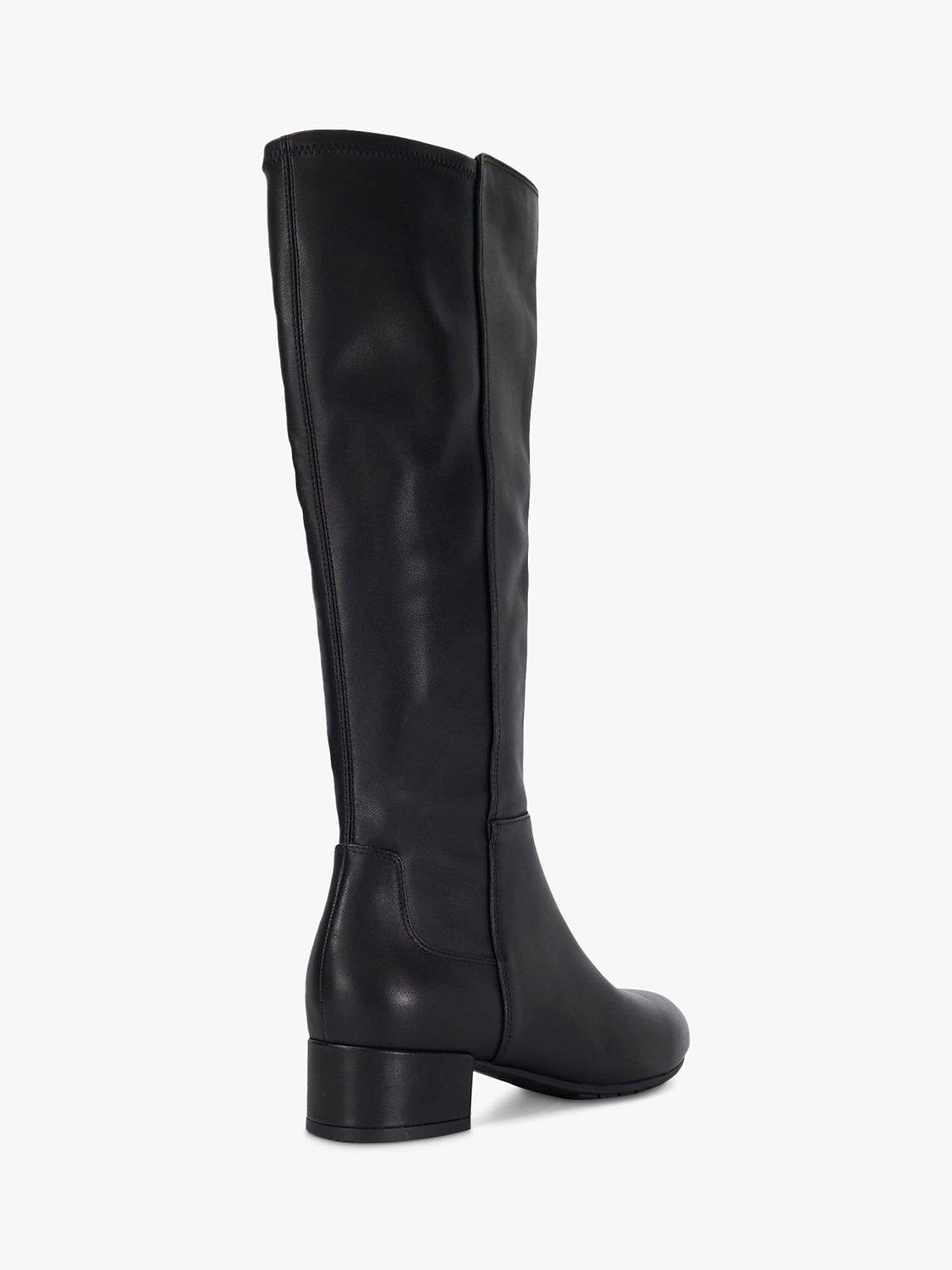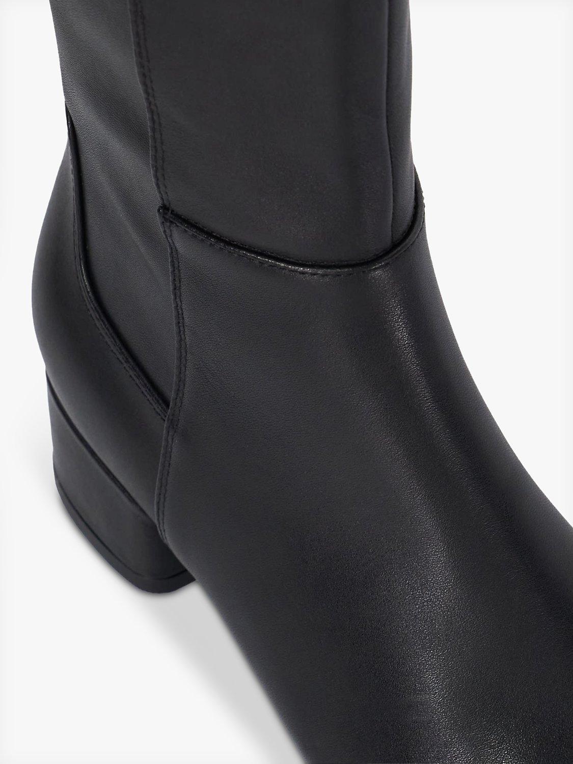 In a sleek style that'll bring in all the compliments, this pair of knee-high boots from Dune is made with longevity in mind, thanks to its quality leather uppers. Resting on a block heel, they have an almond-shaped toe that makes for a smooth finish.