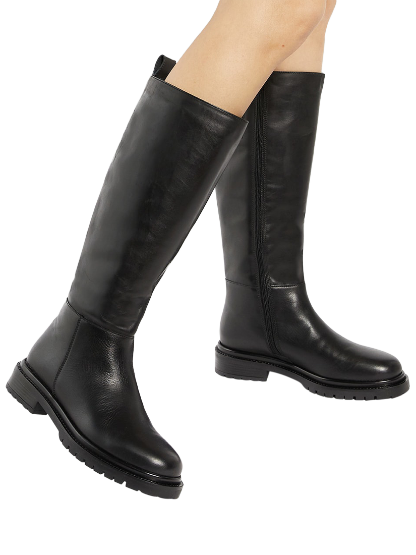 Pulling up to the knee in a style that's destined to be noticed, this pair of boots by Dune offers a luxurious feel with its supple leather. Elevated on a block heel, they are finished with a rounded toe.