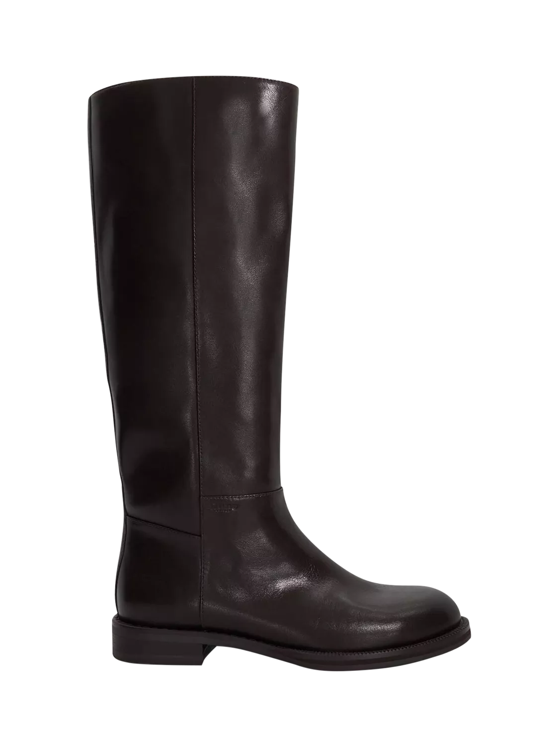 Knee-high boots featuring a round toe and easy slip-on style. The flat heel offers all-day comfort while the leather upper adds polished flair to your casual look.
