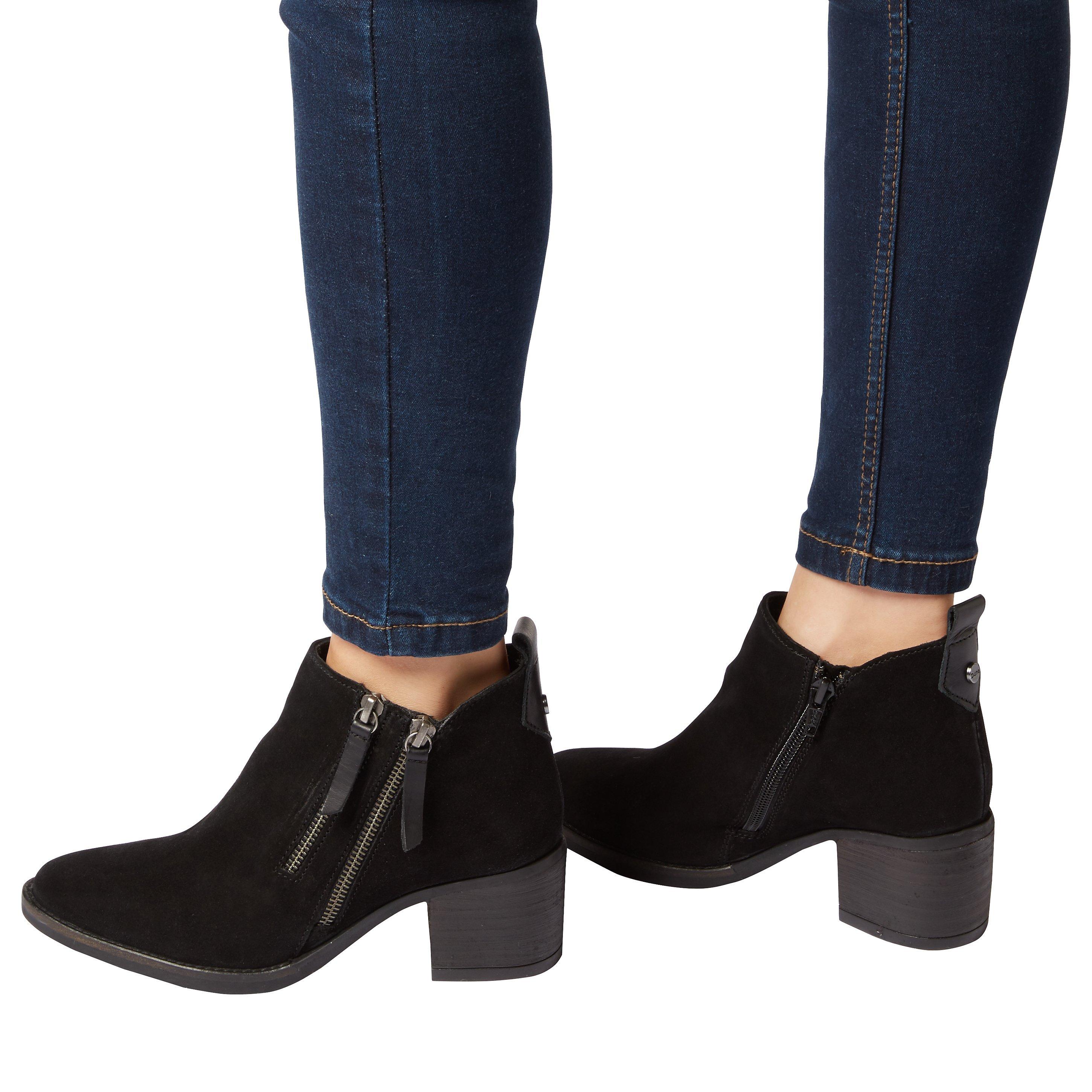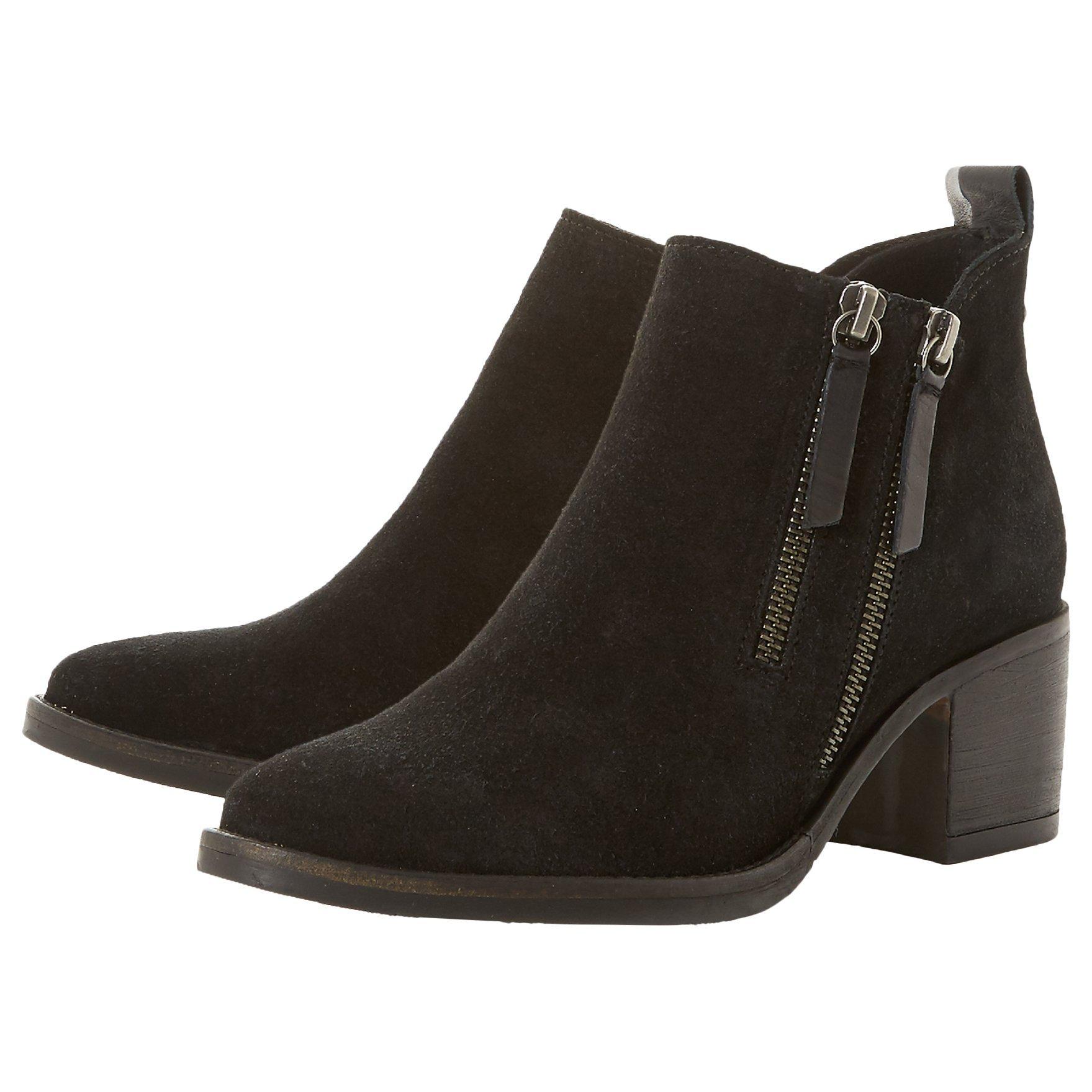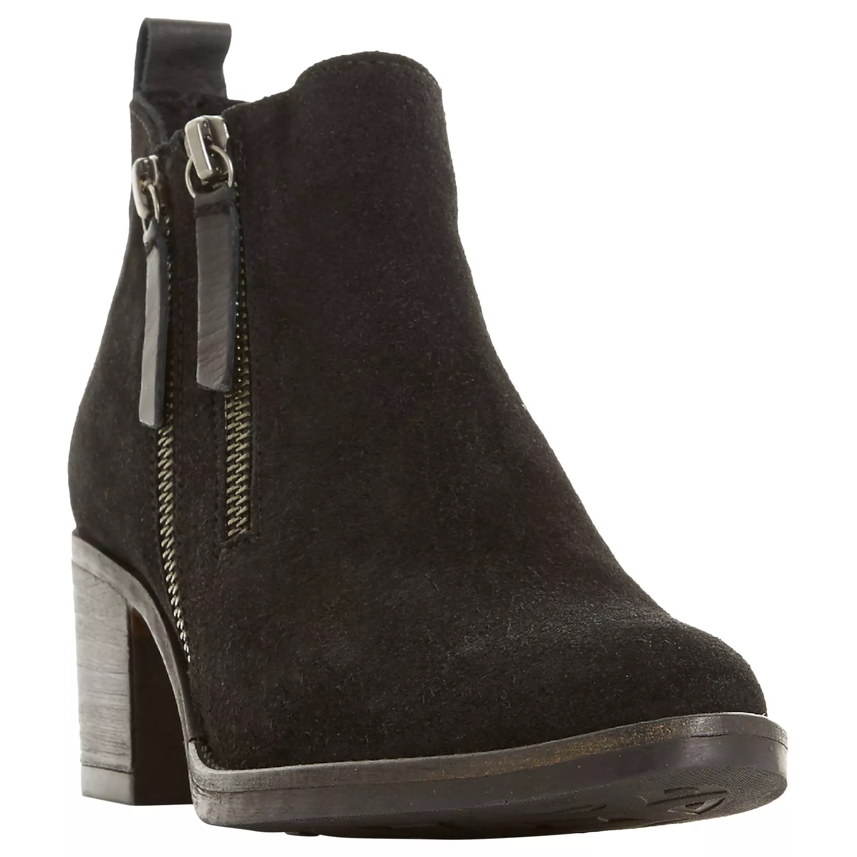 Opt for comfort and style with these Pikton ankle boots from Dune. Set to a mid block heel for a touch of lift, this boot fastens on the inside and is decorated with two zips for an edgy finish.