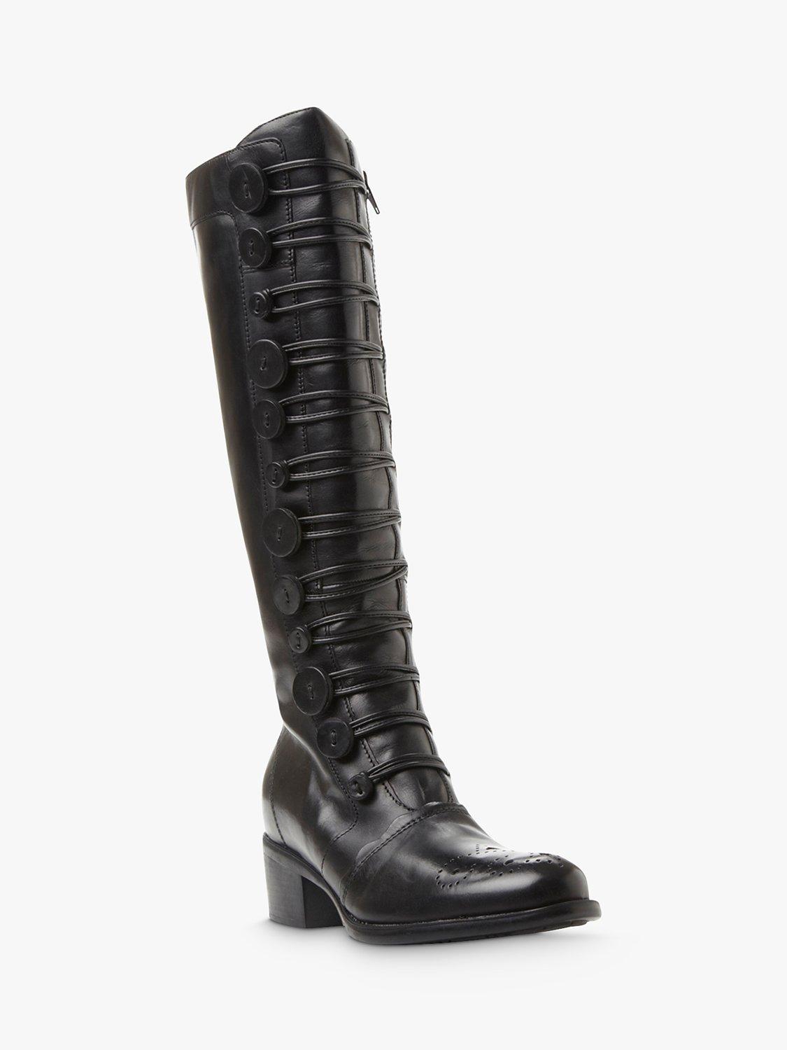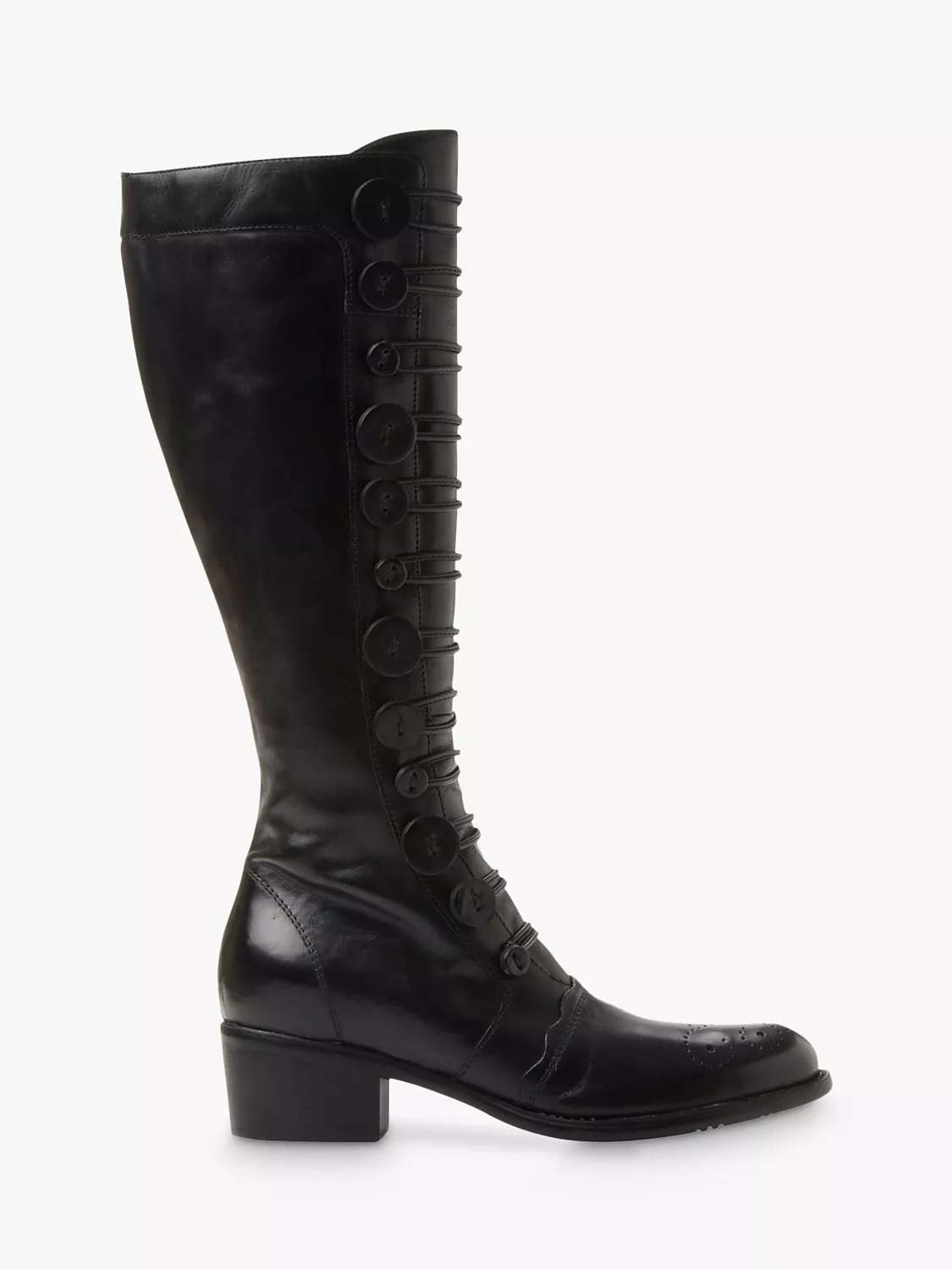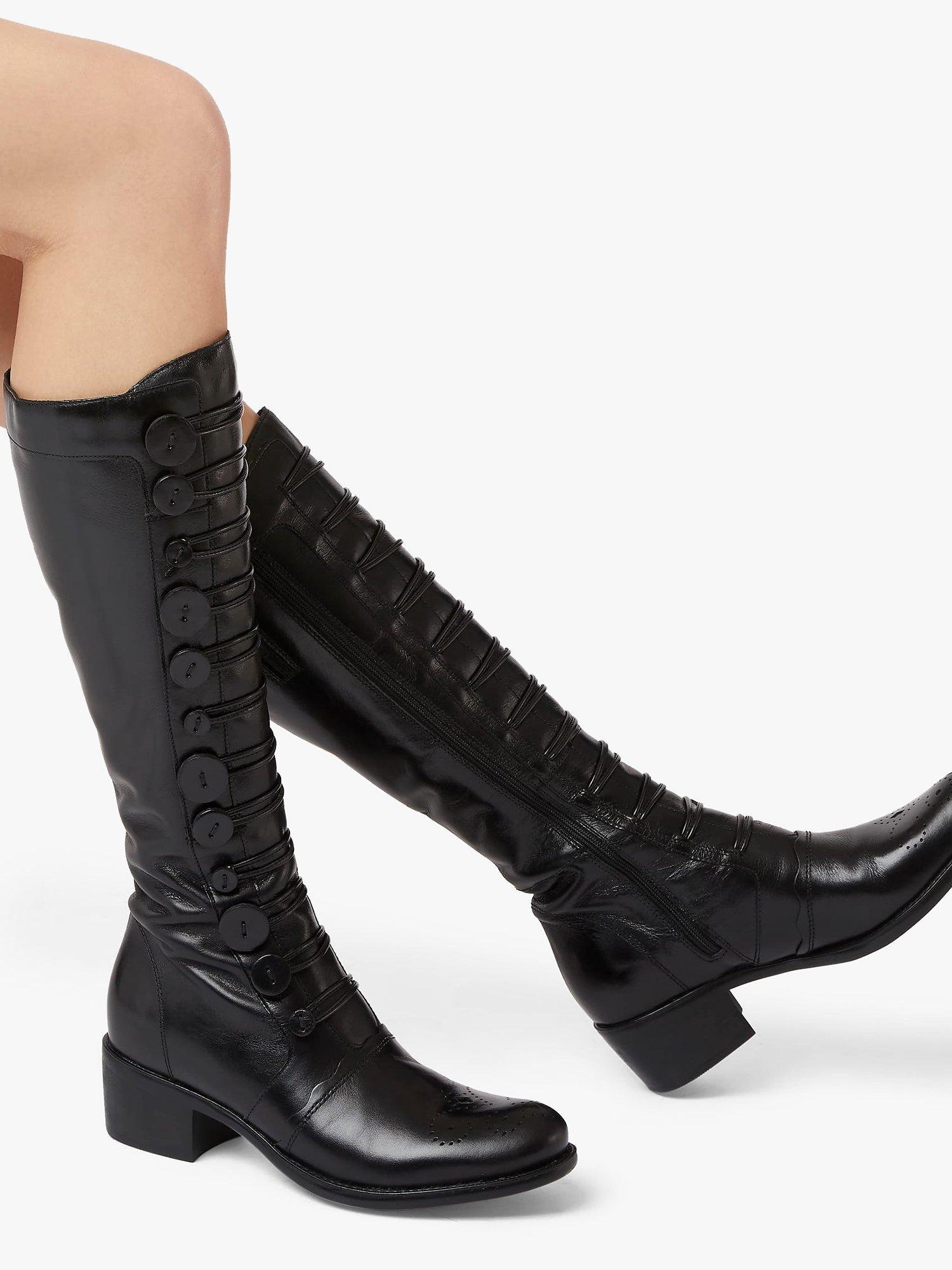 This knee high boot from Dune features a burnished toe with brogue detailing and an inside zip fastening. Button detailing to the front of the shoe adds a unique finish to a classic shoe shape.