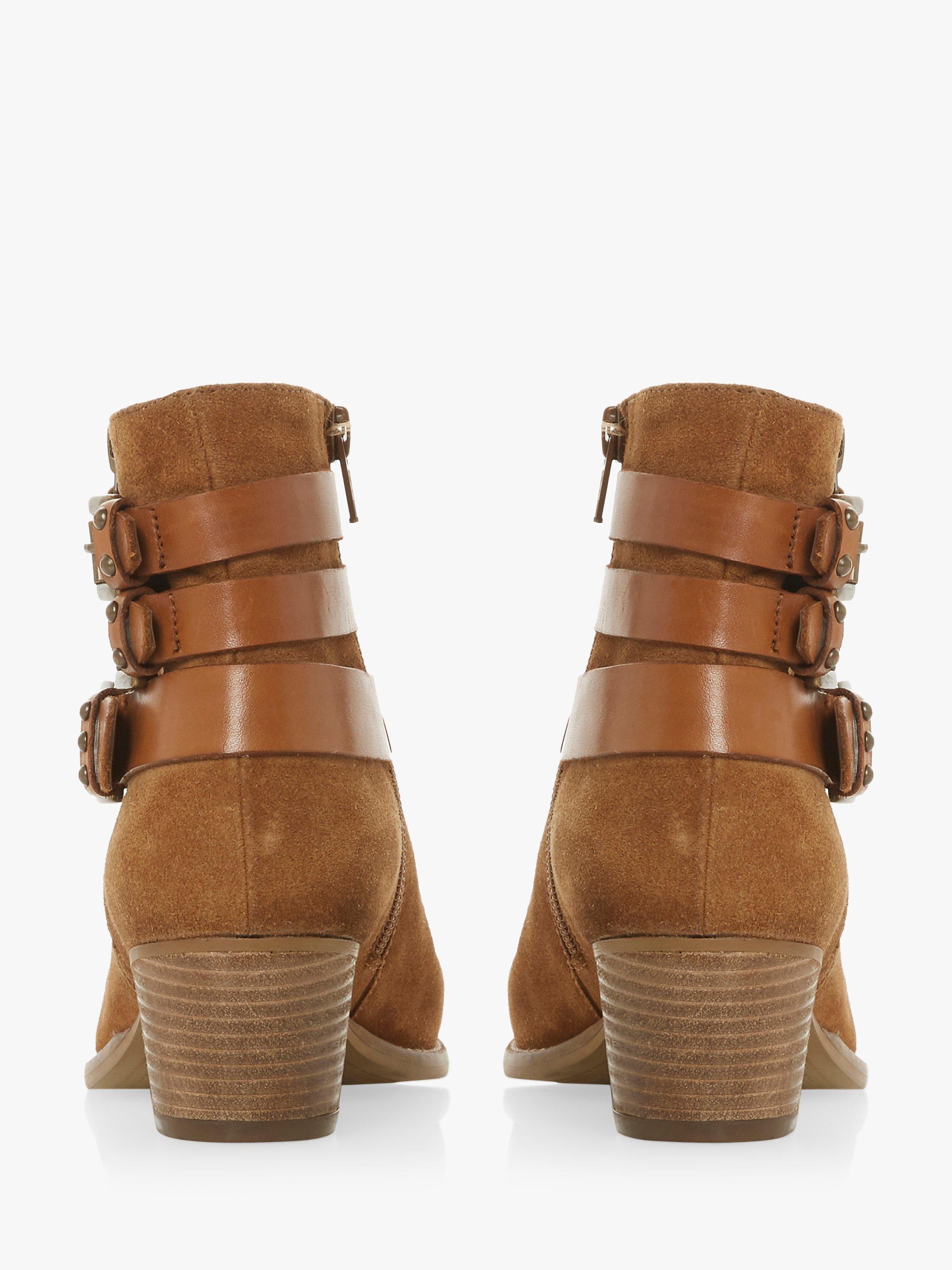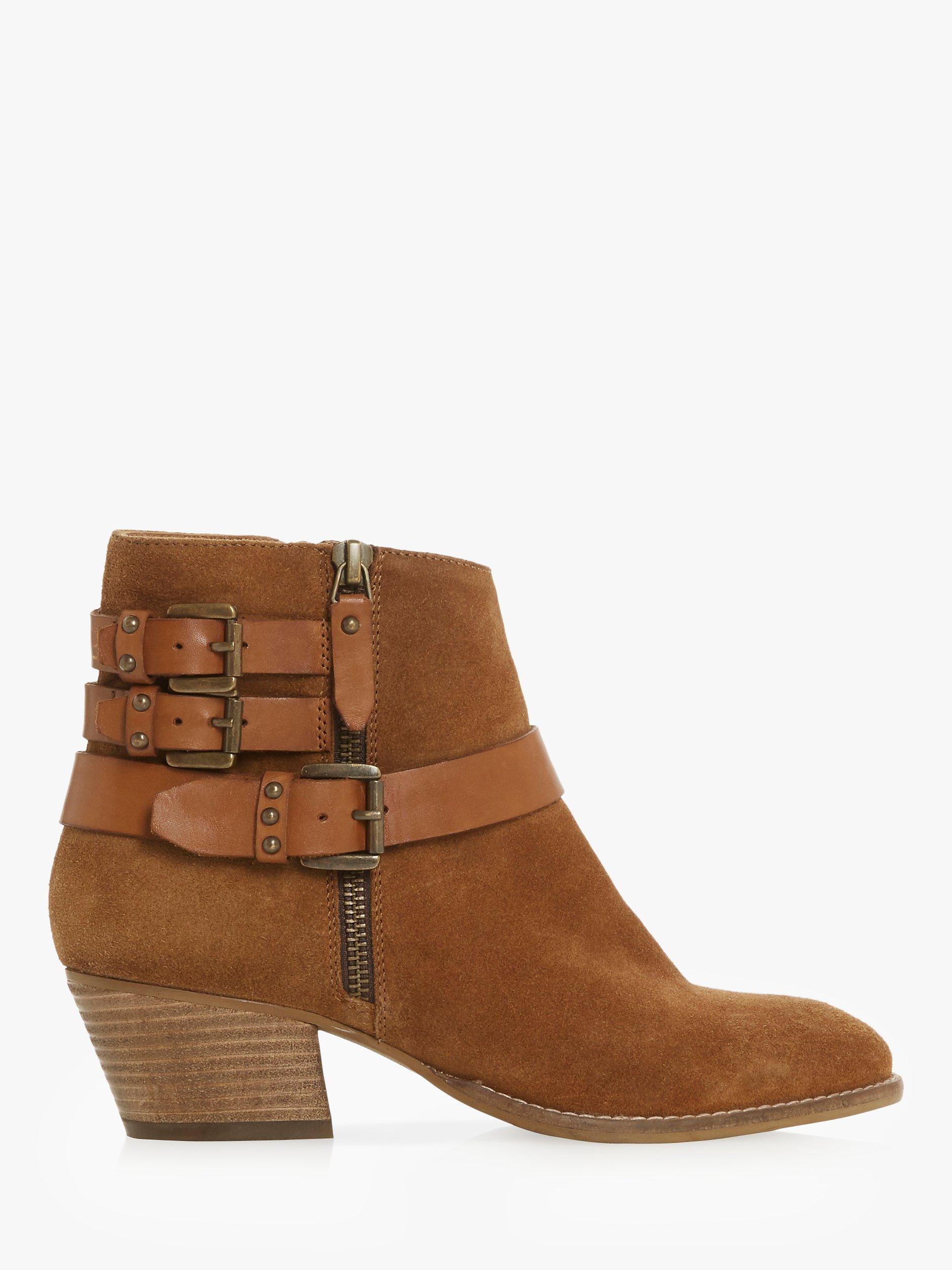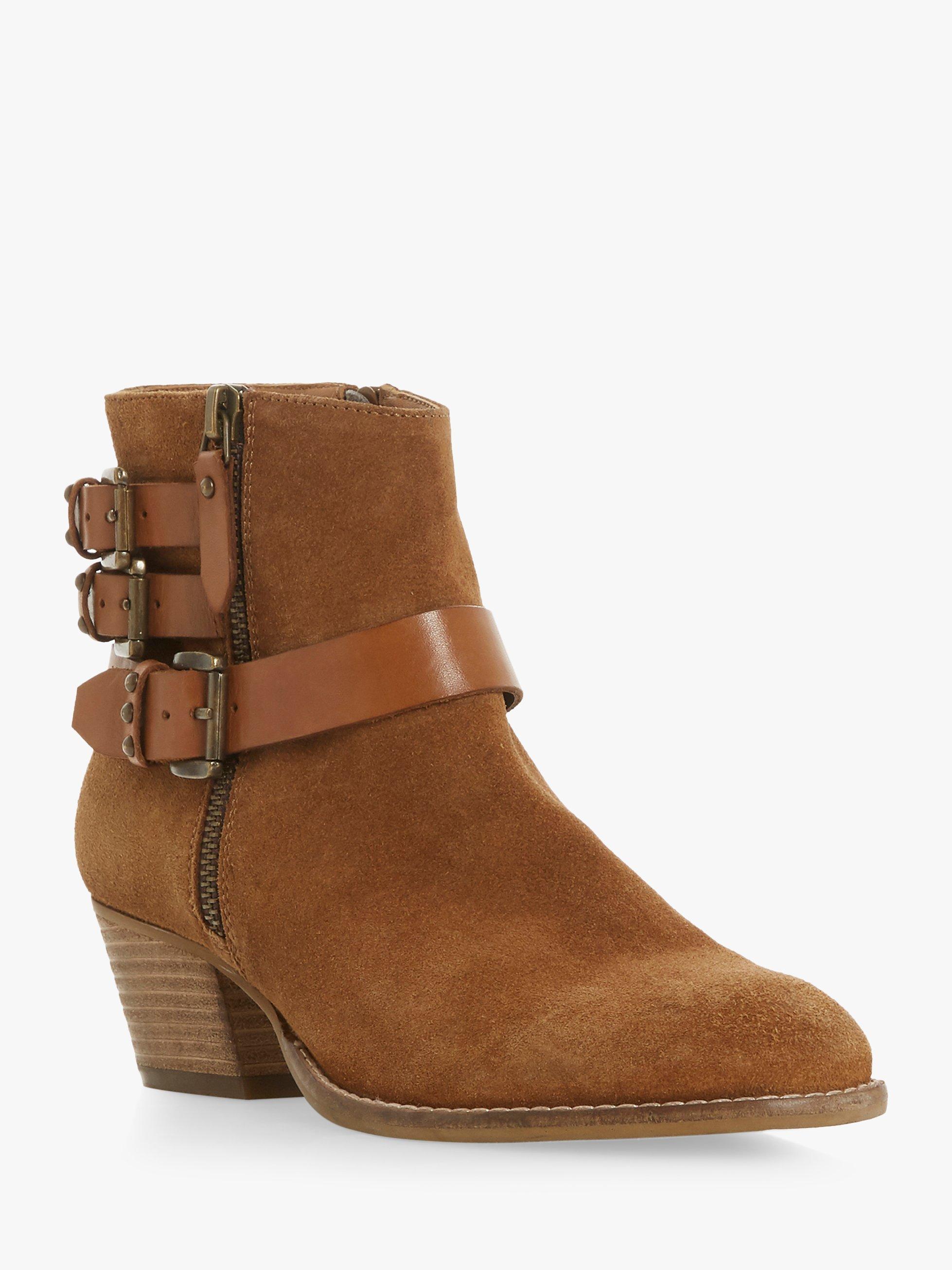 Complete your off-duty style with the Primer ankle boot from Dune. Resting on a mid block heel it showcases a timeless almond toe. It is complete with triple buckle strap detailing and a zip fastening.