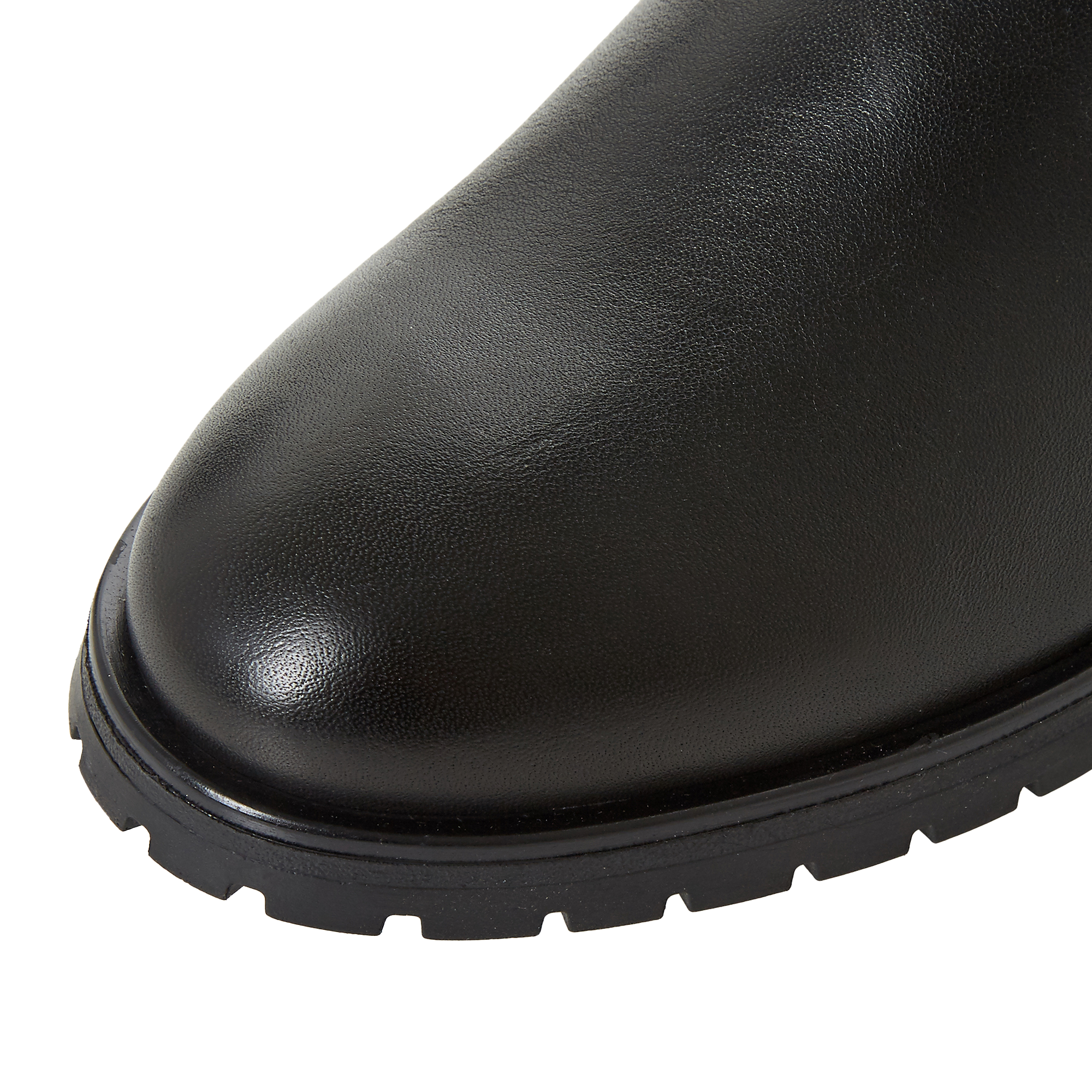Bring an equestrian inspired feel to your everyday looks with these Vinne boots from Dune. Boasting a knee high design, this boot is set to a low block heel and is detailed with a buckle at the side. Fastening with a simple zip, they are lined in soft leather for comfort.