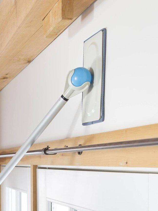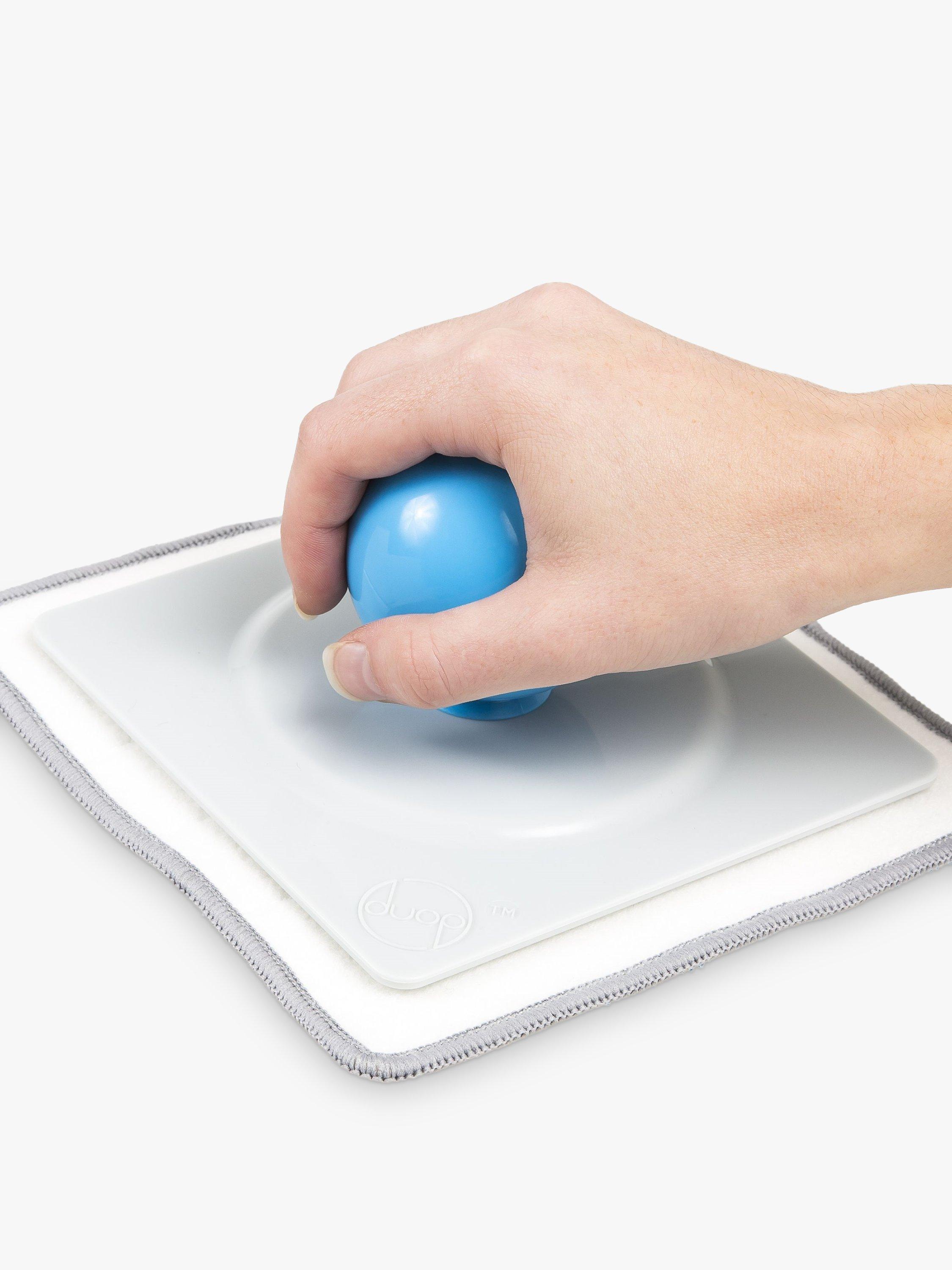Duop makes cleaning at any angle simple because the cleaning head stays in whatever position you need it in. The ball's natural ergonomic design allows you to hold the tool so the head can be removed to allow cleaning tasks to be performed by hand. The ball also acts as a handle to help avoid contact with dirt and chemicals.