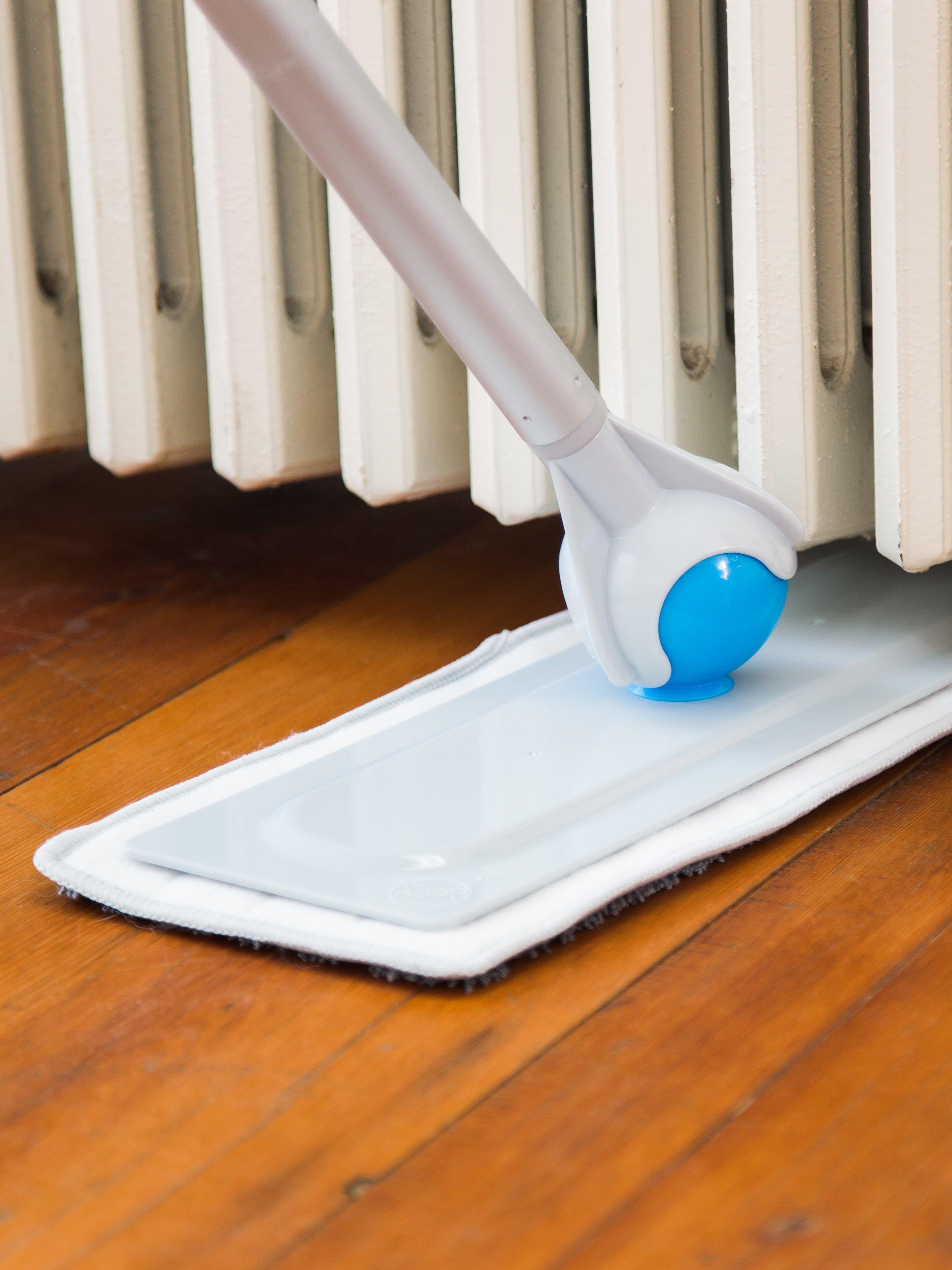 The Duop is a new kind of mop that uses a unique ball-and-socket mechanism to make cleaning faster and easier.