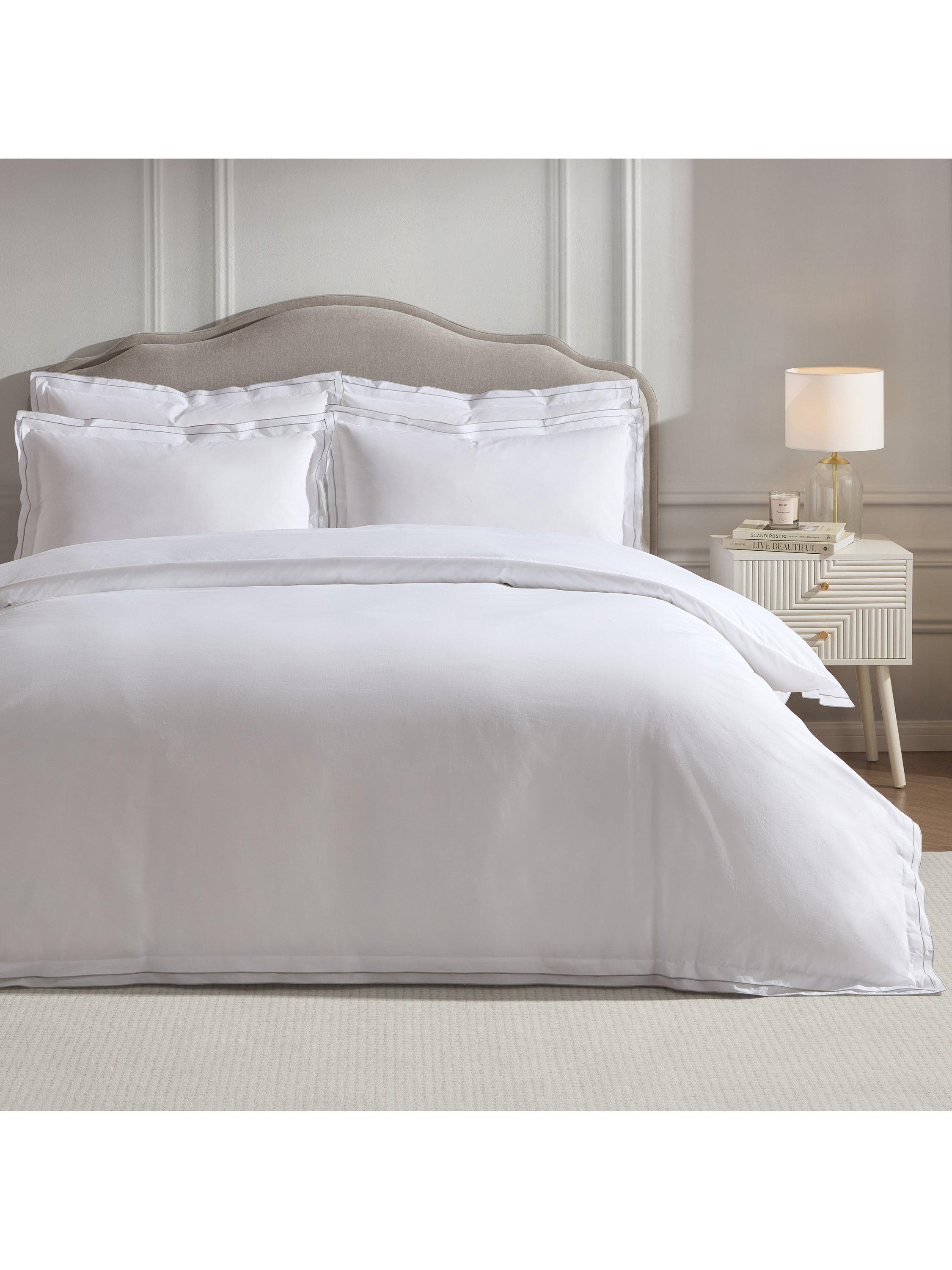 Made from 100% cotton with a smooth 300 thread count, this bedding feels beautifully soft and breathable against the skin. The double overlocked border in a contrast trim frames the edges for a refined, tailored look.