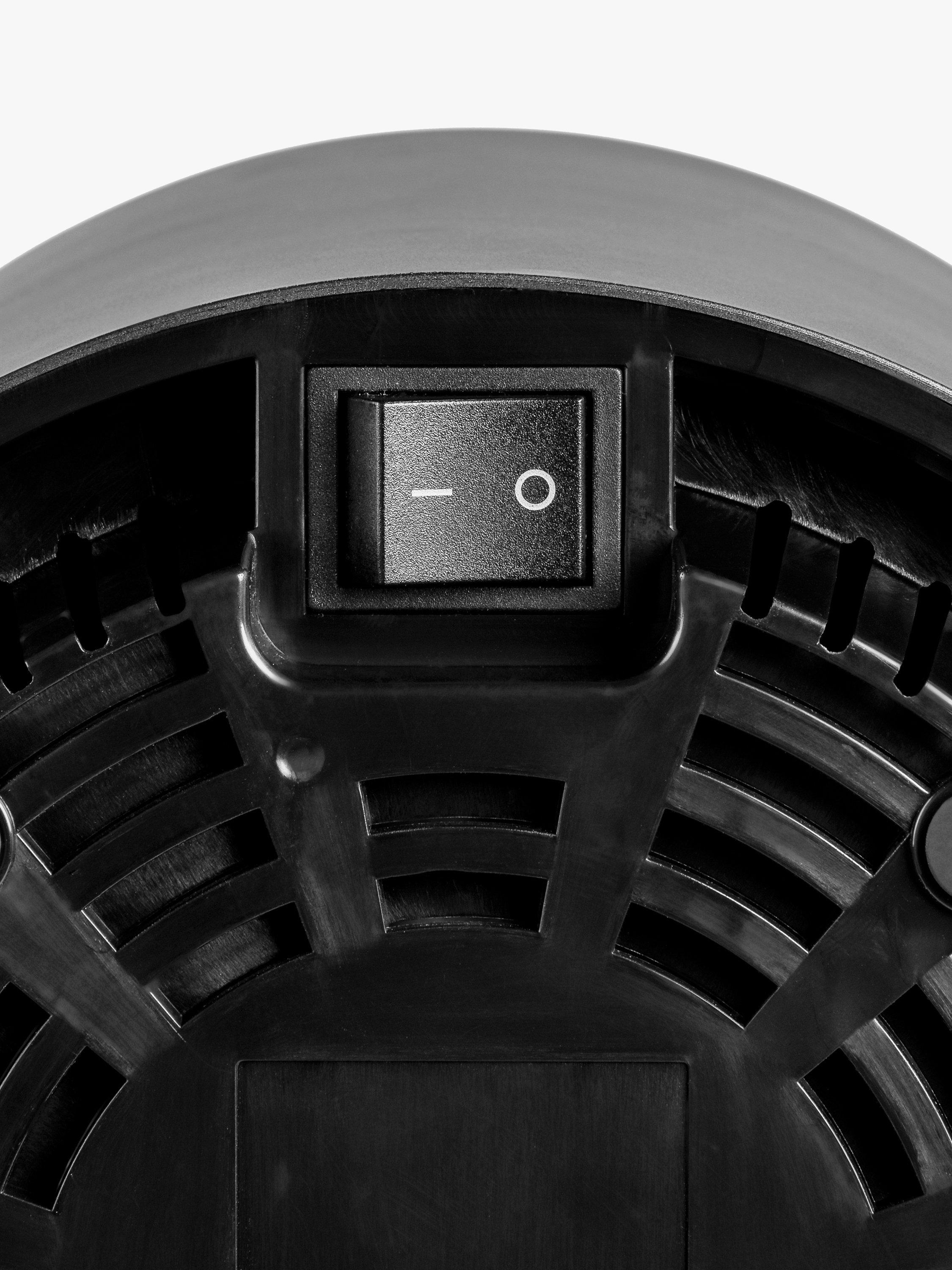 Threesixty achieves a cosy room temperature thanks to its adjustable settings. Safety-wise, Threesixty is equipped with a tip-over safety switch in case it falls over, overheat protection if the heater gets too warm, and a safety switch on the bottom so it can’t be switched on by accident.