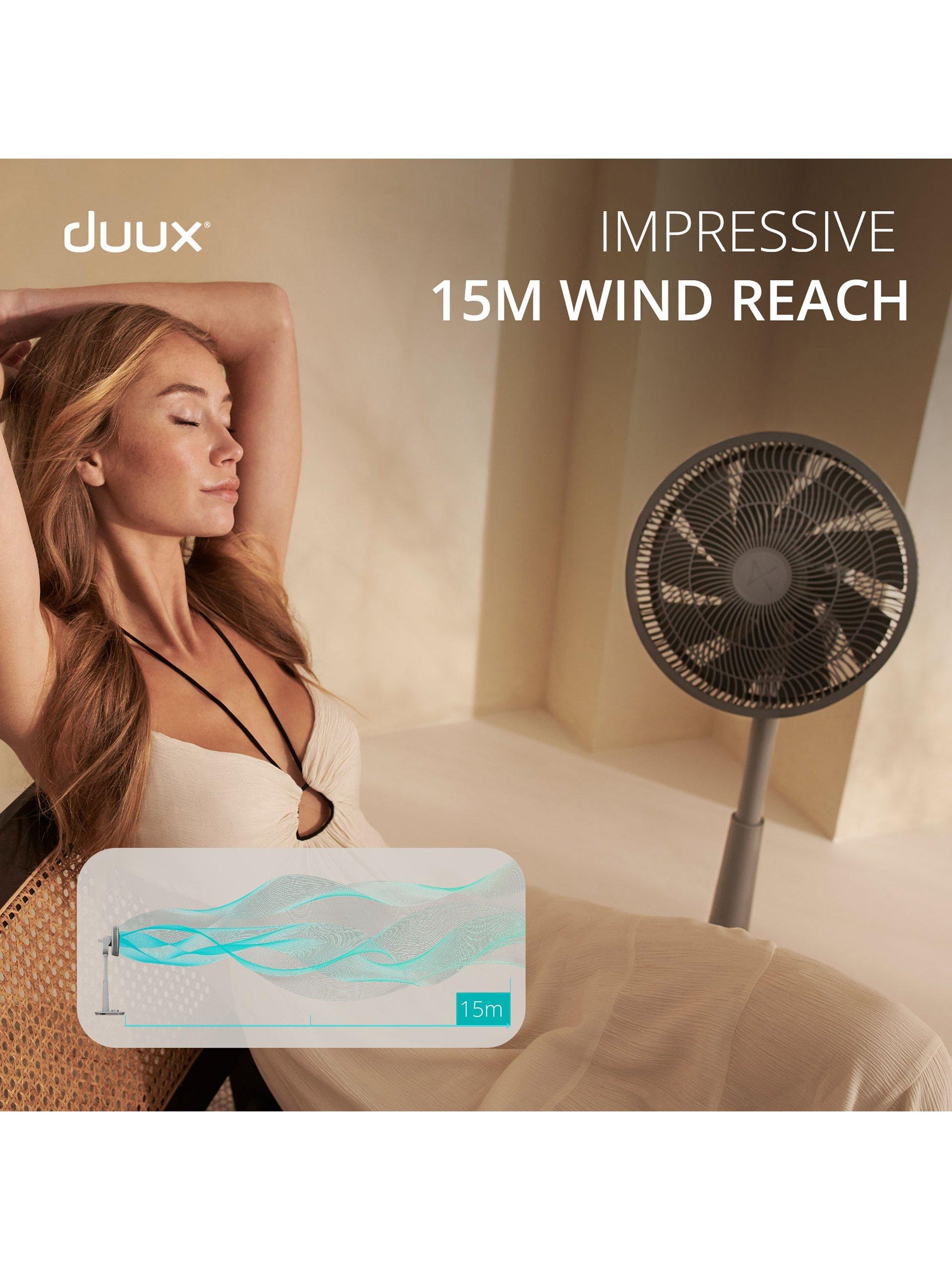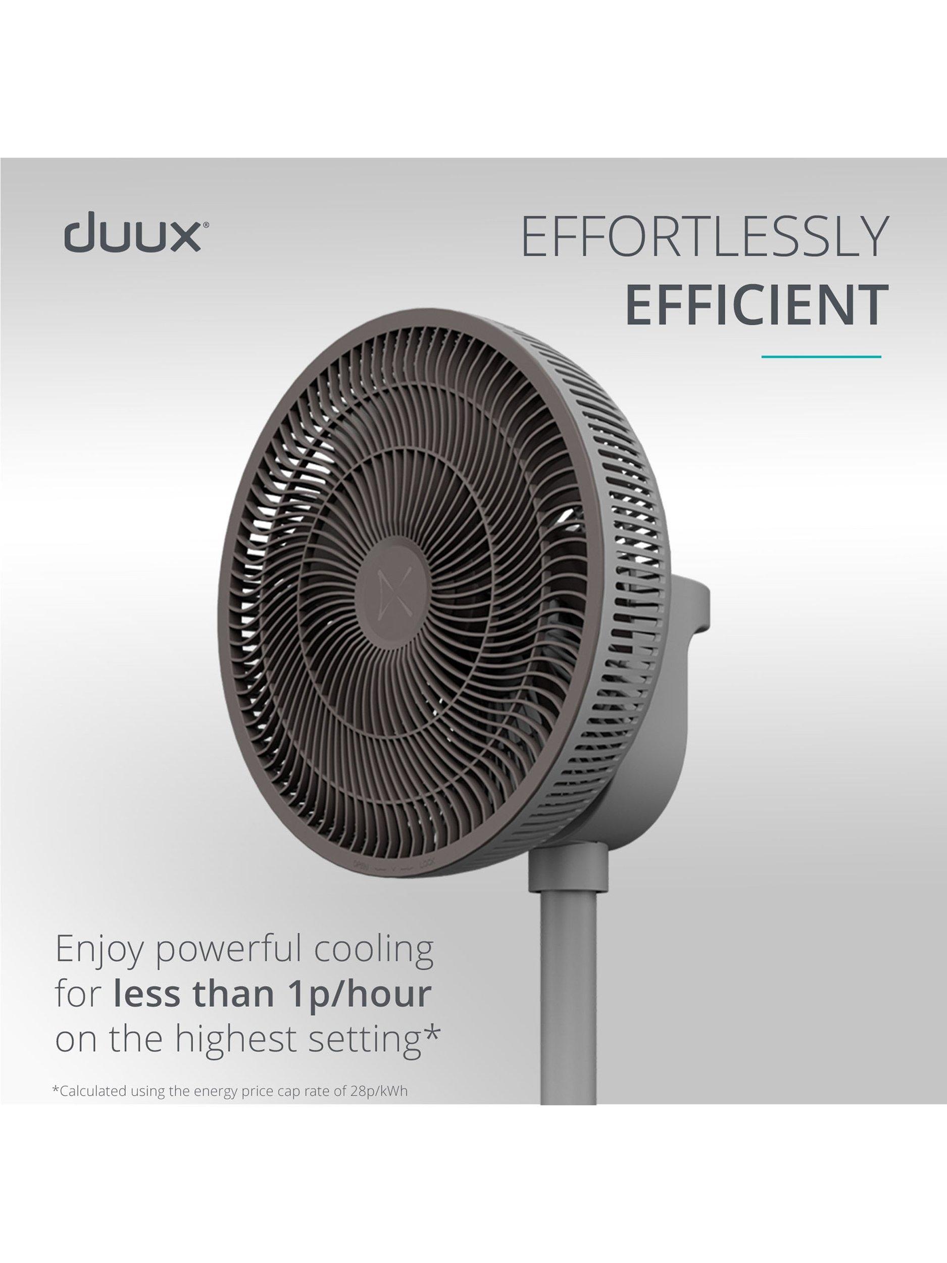 Duux Whisper 2 is incredibly energy efficient, using just 1.6 W at the lowest setting and only 19 W at maximum power.