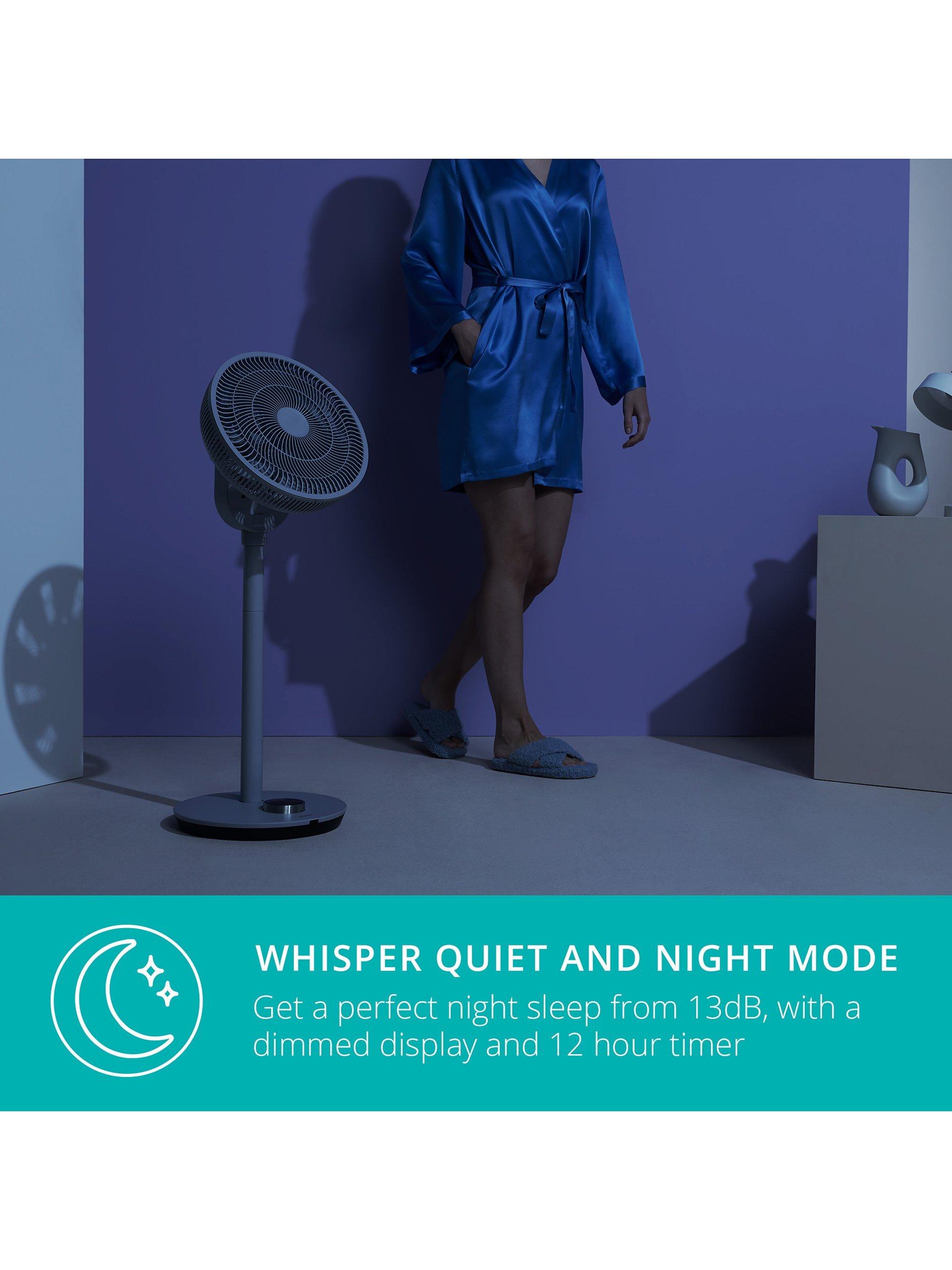 In night mode, the display turns off completely after 10 seconds to ensure a good night’s sleep. The display can be reactivated by pressing the control button. At the lowest speed, the fan produces only 13 dBa and thanks to the double blade design, the cutting wind noise is reduced.