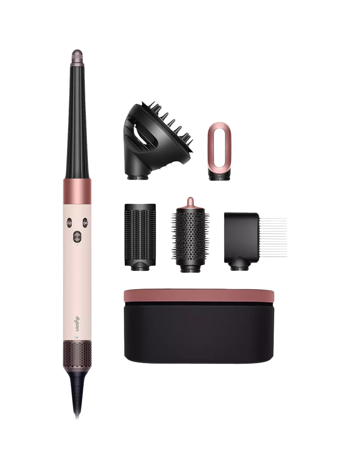 - Dyson Airwrap i.d.™ multi-styler and dryer Curly+Coily in Ceramic pink / Rose Gold, Conical barrel, Wave + Curl diffuser, Anti-snag loop brush, Large round volumising brush, Wide-tooth comb, Fast dryer, Filter cleaning brush