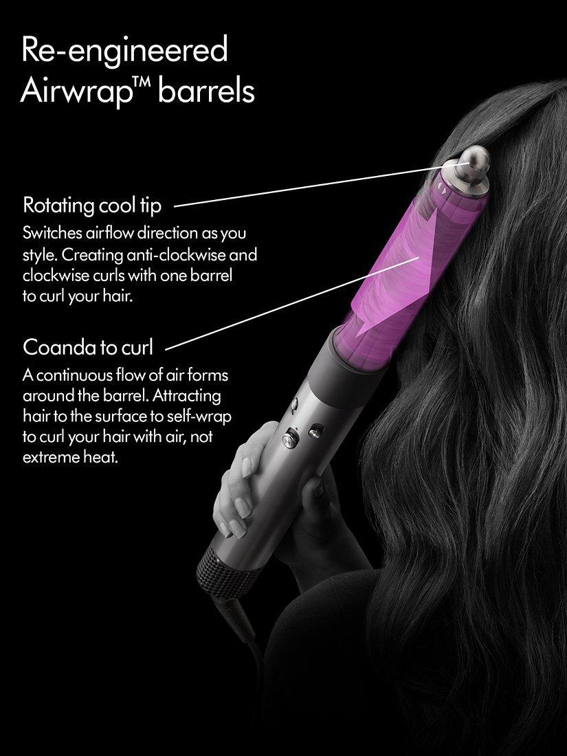 - AirwrapTM Barrels - For both tight voluminous bouncy curls or looser waves, the 30mm and 40mm long barrels use Enhanced Coanda airflow to curl with air not extreme heat. Re-engineered so you can create clockwise and anti-clockwise curls with one barrel, for faster styling³. Precision built for short-medium length hair and different hair types.