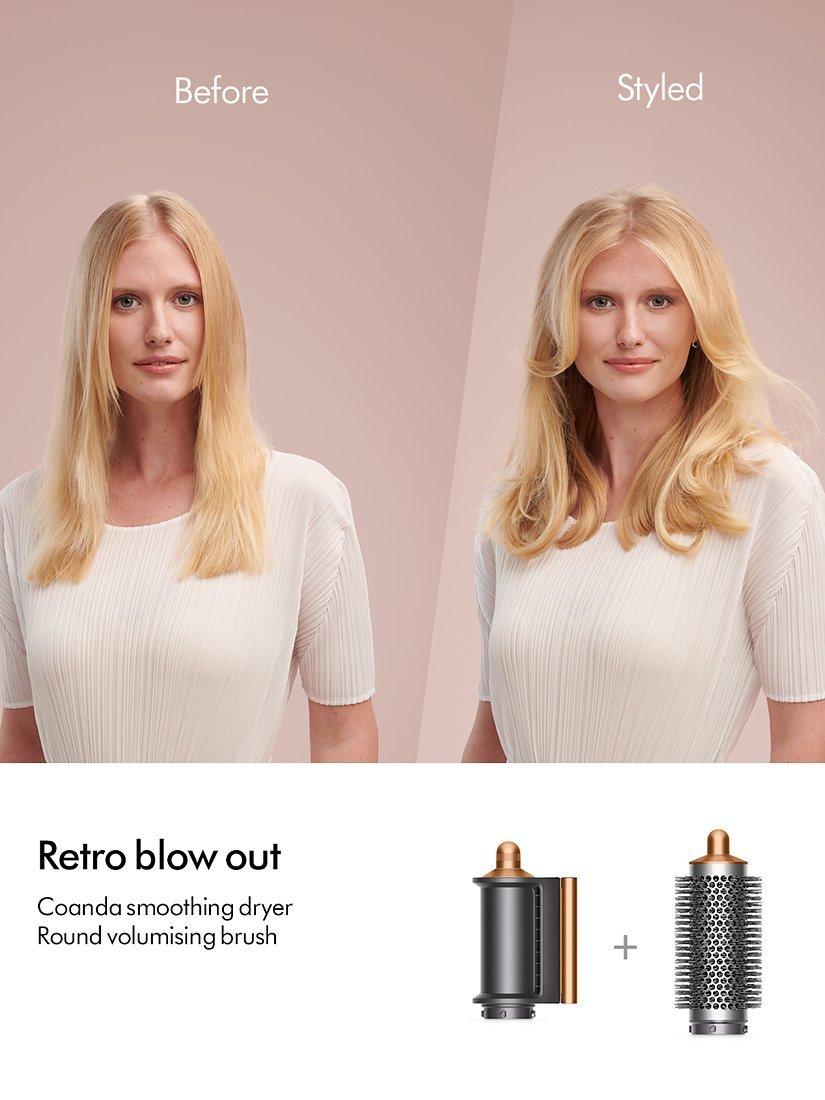 The only multi-styler to dry, curl, shape and hide flyaways with the Coanda effect – with no heat damage. Invented by Dyson. Re-engineered attachments harness Enhanced Coanda airflow to create your styles with air, not extreme heat.