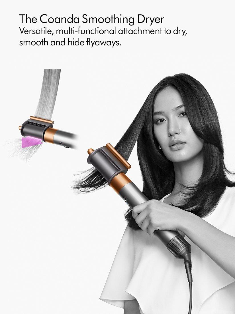 Re-engineered attachments for faster and easier styling³ with increased control⁴ – 3 attachments included in the box including re-engineered barrel that curls in both directions and a 2-in-1 multi-functional Coanda Smoothing dryer harness enhanced Coanda airflow to pre-dry and finish your styles.
