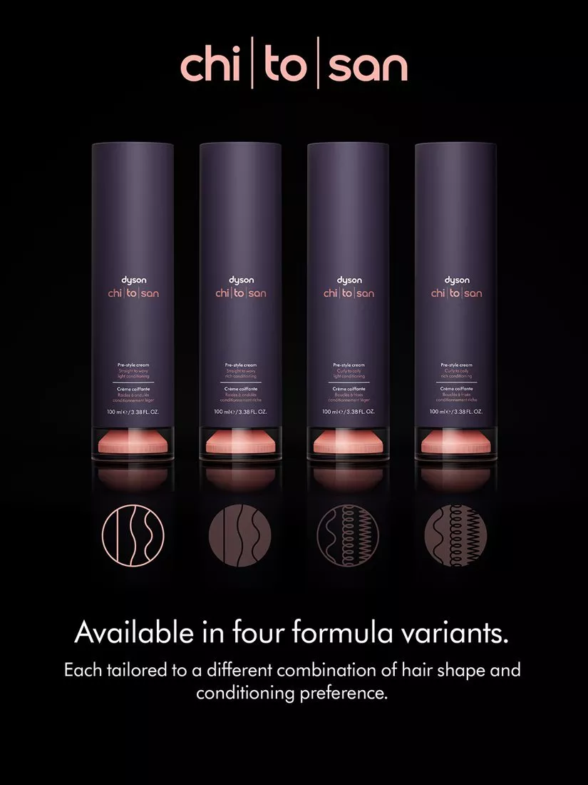 Dyson Chitosan™ Pre-style cream. Straight to wavy light conditioning.