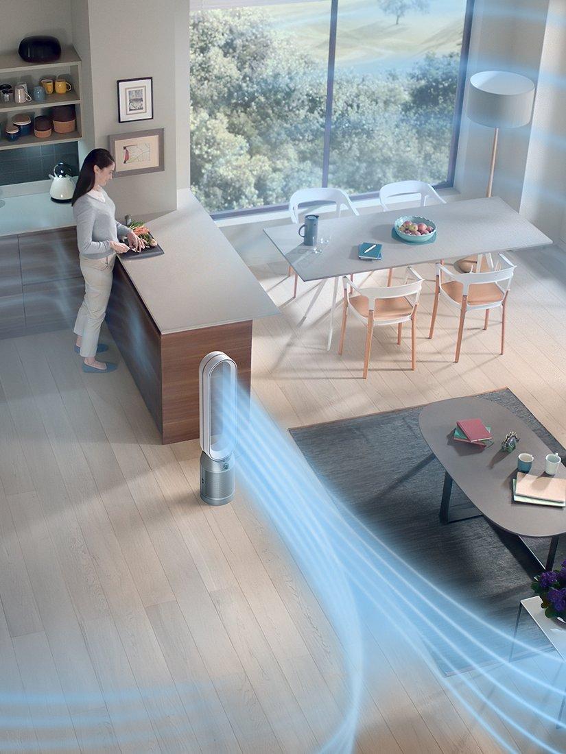 Only Dyson purifiers have Air Multiplier™ technology, to purify the whole room.** It generates powerful circulation, drawing pollutants from every corner into the filters and projecting purified air throughout the room. In warmer weather, a powerful stream of purified airflow can cool you down****.