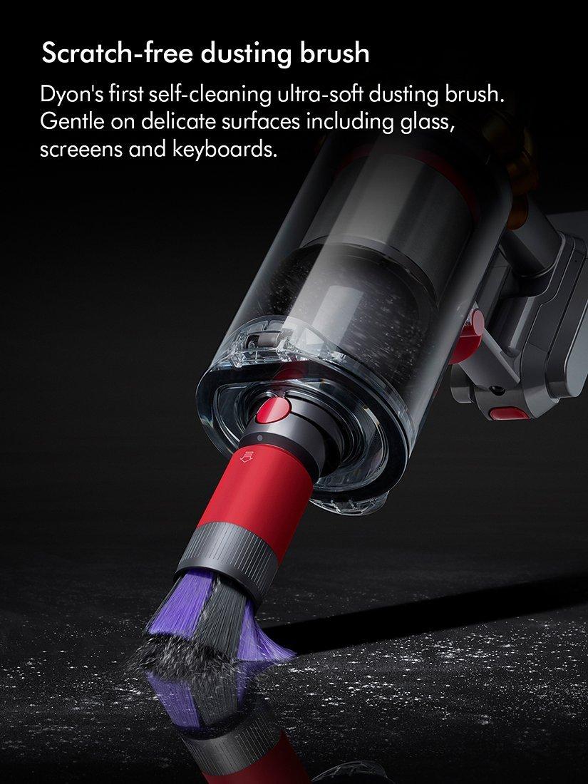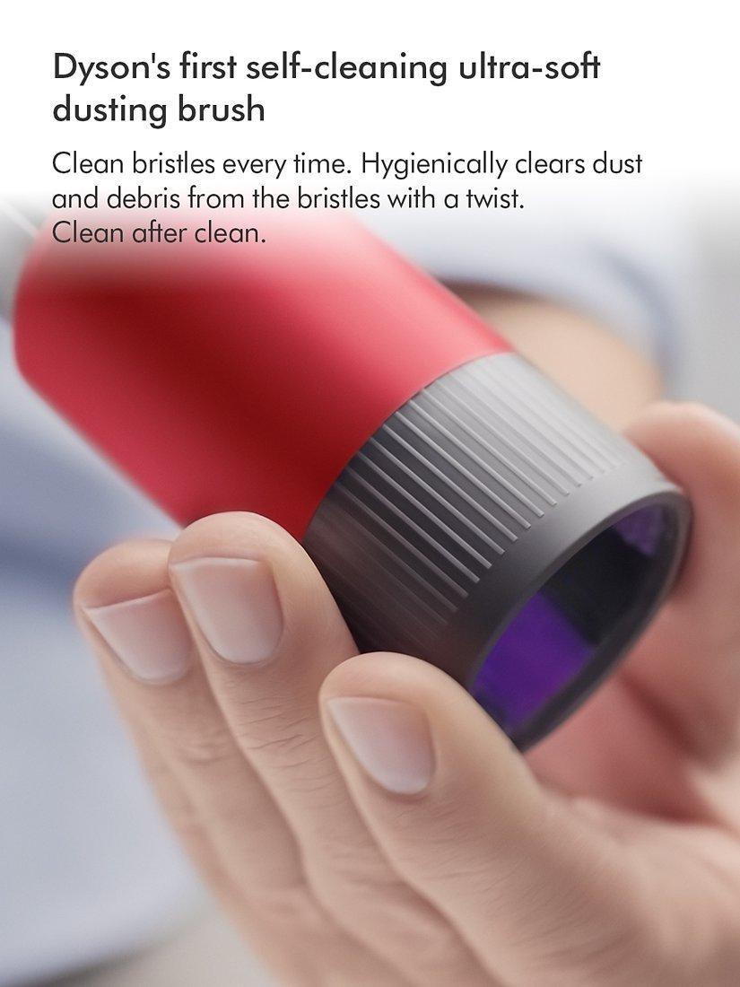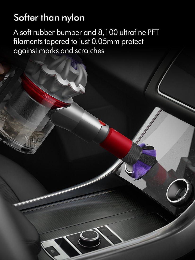 Dyson’s first self-cleaning ultra-soft dusting brush. Gentle on delicate surfaces including glass, screens and keyboards. Removes hidden and built-up dust without leaving any damage.