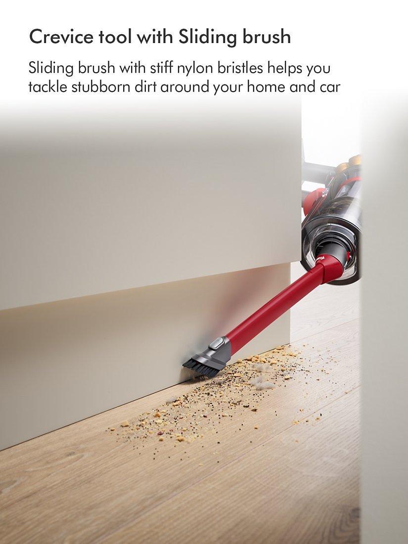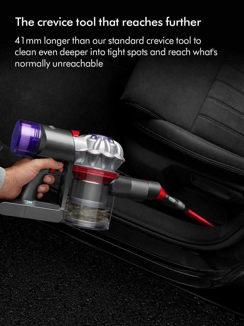 The crevice tool that reaches further. 41mm longer than our standard crevice tool to clean even deeper into tight spots and reach what's normally unreachable.