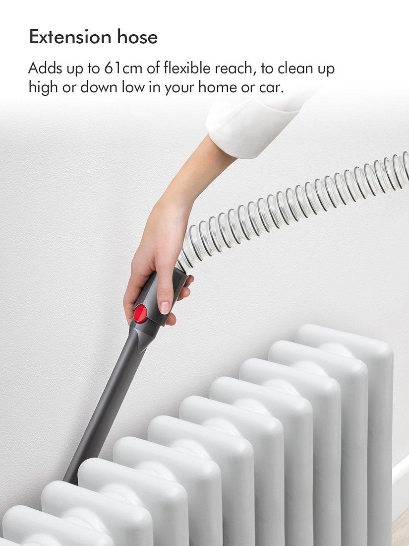 Adds up to 61cm of flexible reach to the scratch free dusting brush, awkward gap tool or any compatible tool, to clean up high, down low and reach further around your home or car. Combines with any Dyson tool to reach further. A flexible wire helix - engineered from tough wire sandwiches between two layers of durable plastic - springs back into position when not in use.