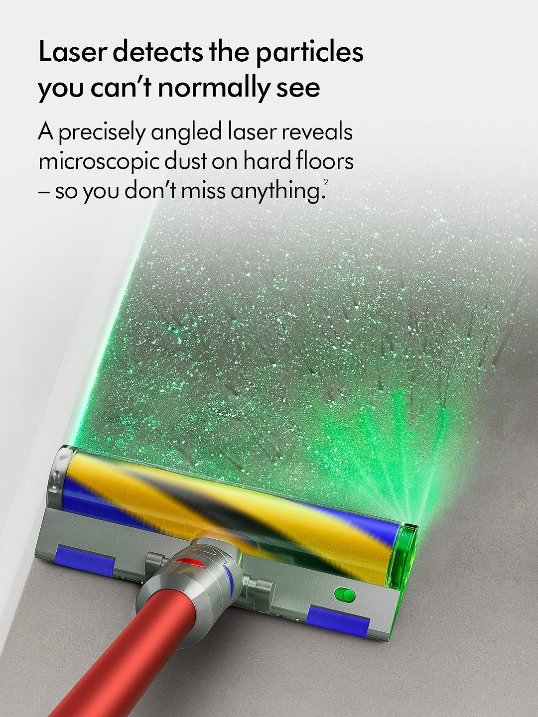Laser detects the particles you can’t normally see. A precisely-angled laser makes invisible dust visible on hard floors – so you don’t miss anything**.