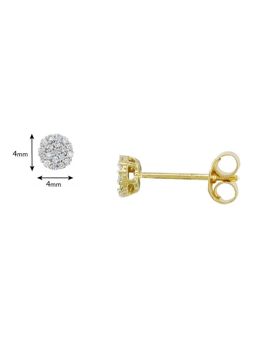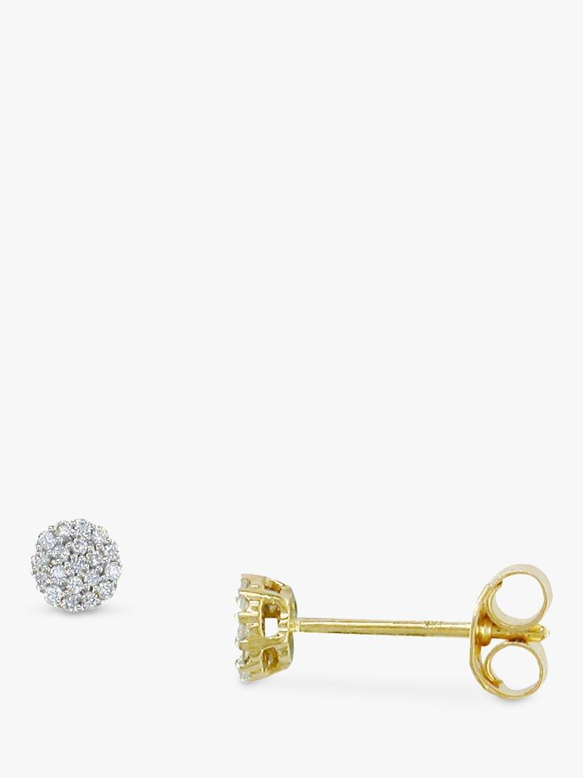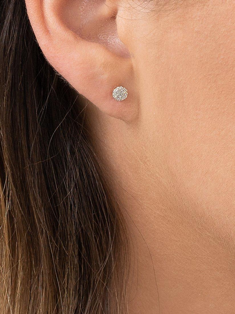 A glittering pair of stud earrings from EWA, which create the effect of solitaire studs with a cluster of round cut diamonds. On 18ct white gold fittings, with a 4-claw setting.