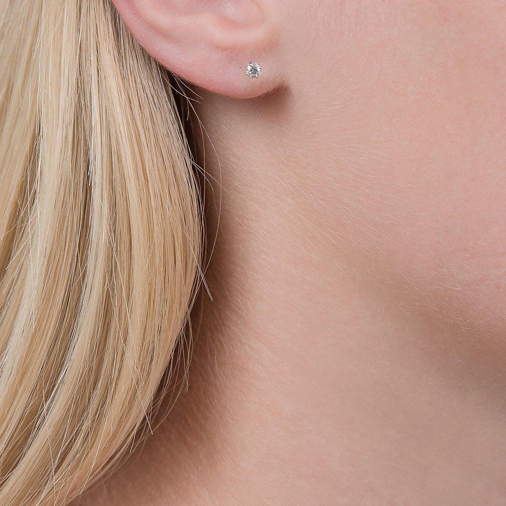 With a classic 4-claw setting for optimum security, the diamonds are held in polished 18ct white gold, staying safely in place with a post and butterfly fitting.