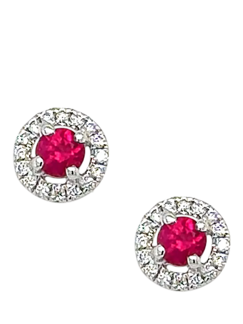 These finely crafted stud earrings come with a ruby gemstone surrounded by 16 round, brilliant-cut diamonds that give a dazzling sparkle. They fasten with classic butterfly fittings that are for pierced ears only.