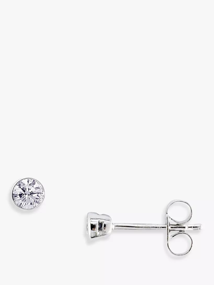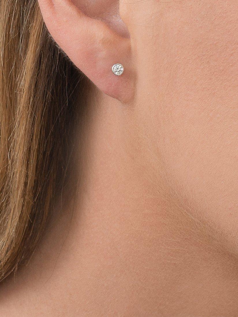 In solid gold, the earrings present a solitaire brilliant-cut diamond in an elegant and flattering rub-over setting. The earrings have butterfly fittings that are for pierced ears only.