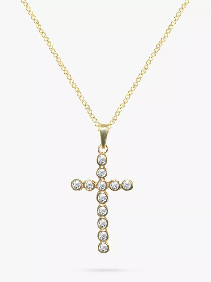 Inspired by traditional symbols, this E.W Adams necklace offers a beautiful cross pendant set with 12 dazzling brilliant-cut diamonds. The brilliant cut is the most popular cut which features 58 facets. This cut is considered the best to bring out the brilliance of the stone.