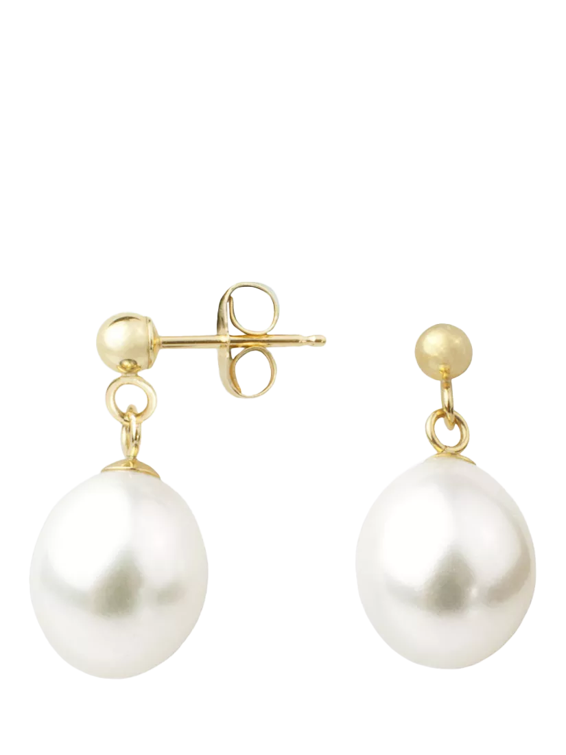 An elegant pair of drop earrings from E.W Adams featuring a luminous freshwater pearl set in 9ct gold.