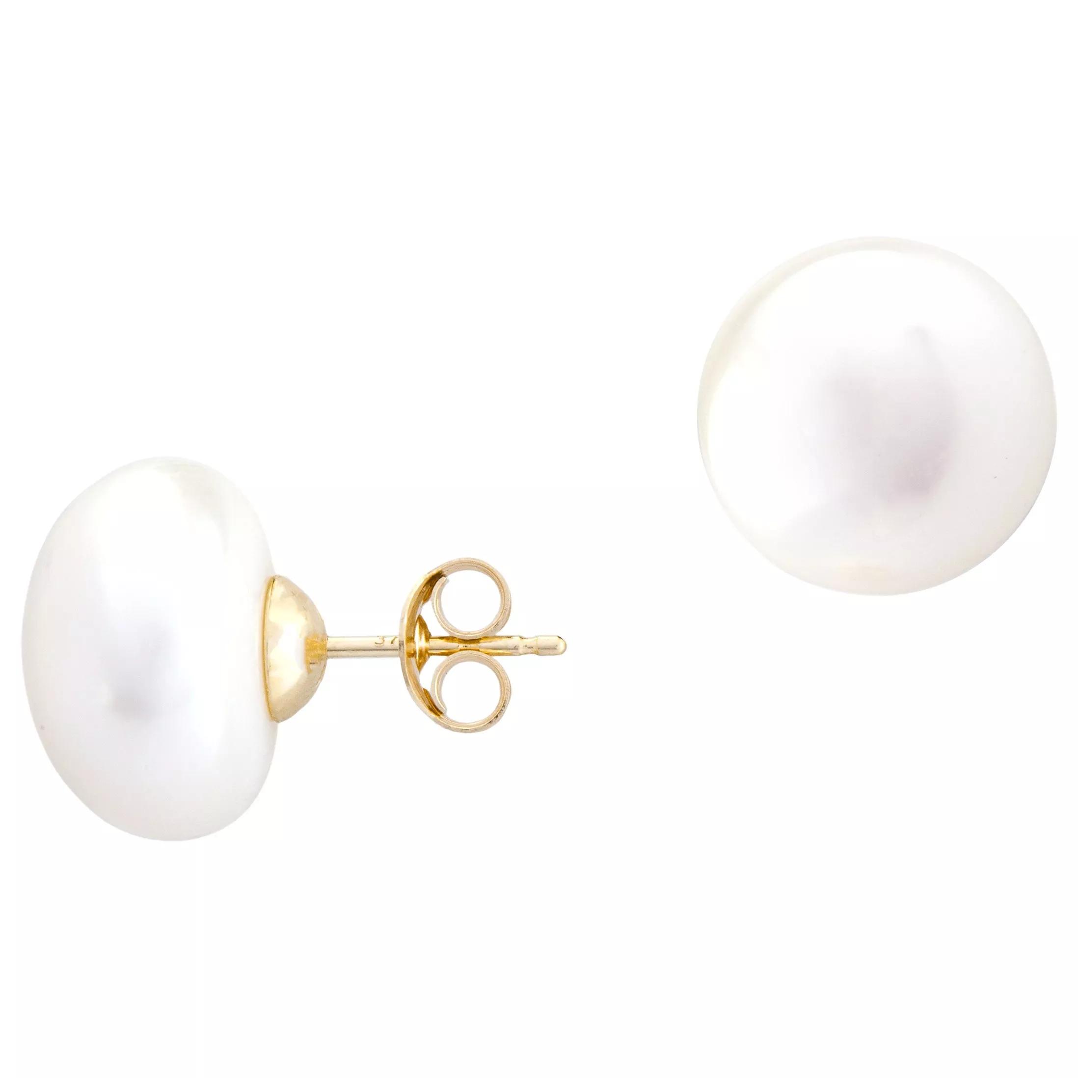 The earrings feature solid gold butterfly fittings and a small iridescent freshwater pearl. The earrings are for pierced ears only and will make a fine addition to a traditional pearl necklace.