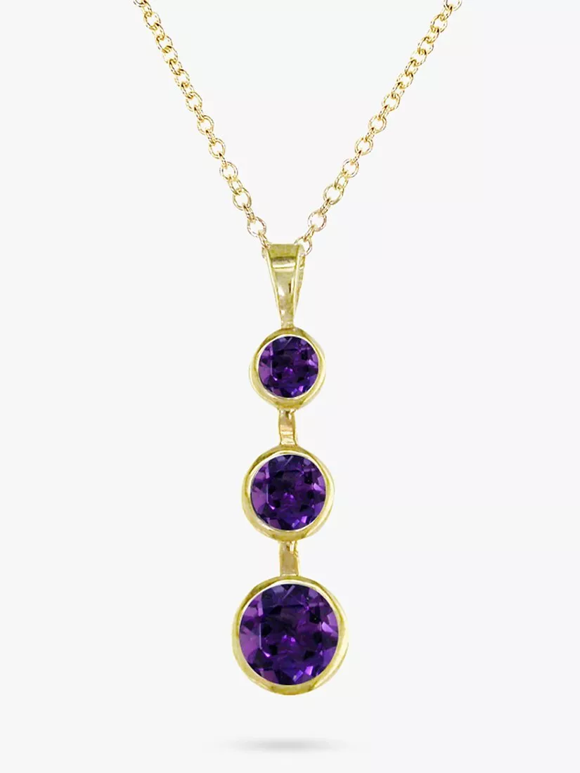 Promising to make a statement when layered atop any outfit, this pendant from E.W Adams is punctuated with three graduating amethyst stones, the stone of calm, patience and protection.