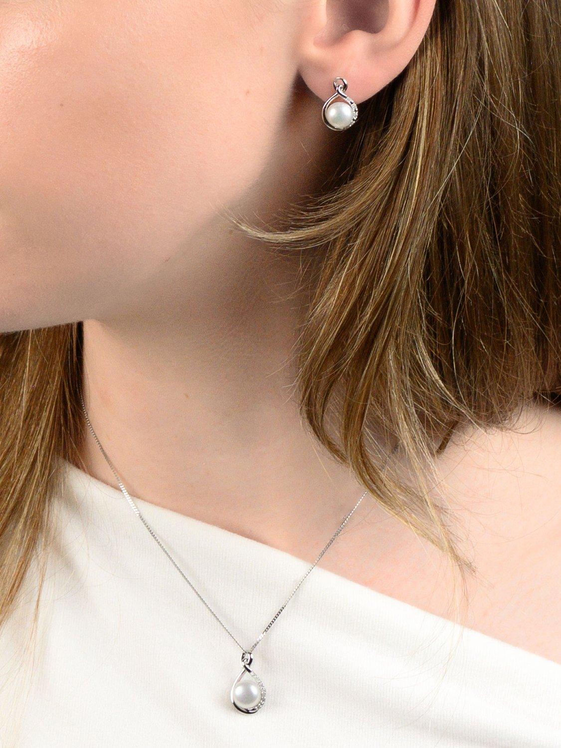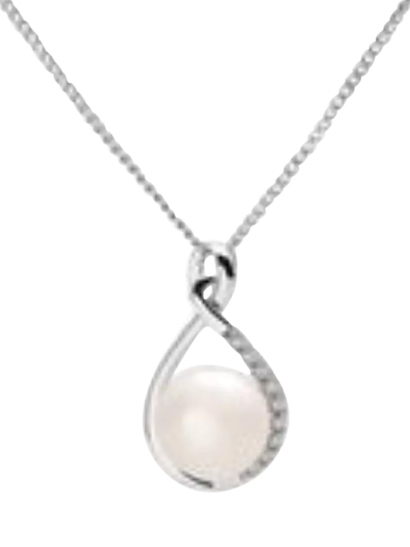 E.W Adams9ct White Gold Freshwater Pearl and Diamond Teardrop Pendant Necklace, Silver/White