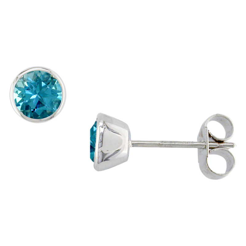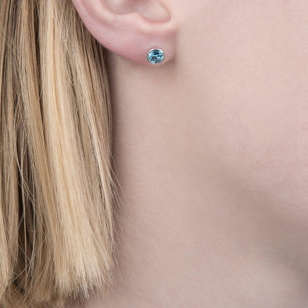 E.W Adams9ct White Gold Round Stud Earrings, Blue Topaz