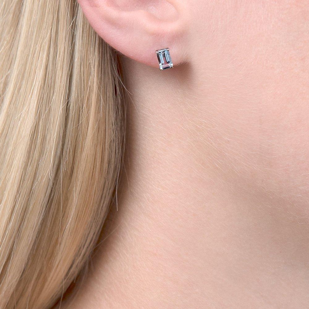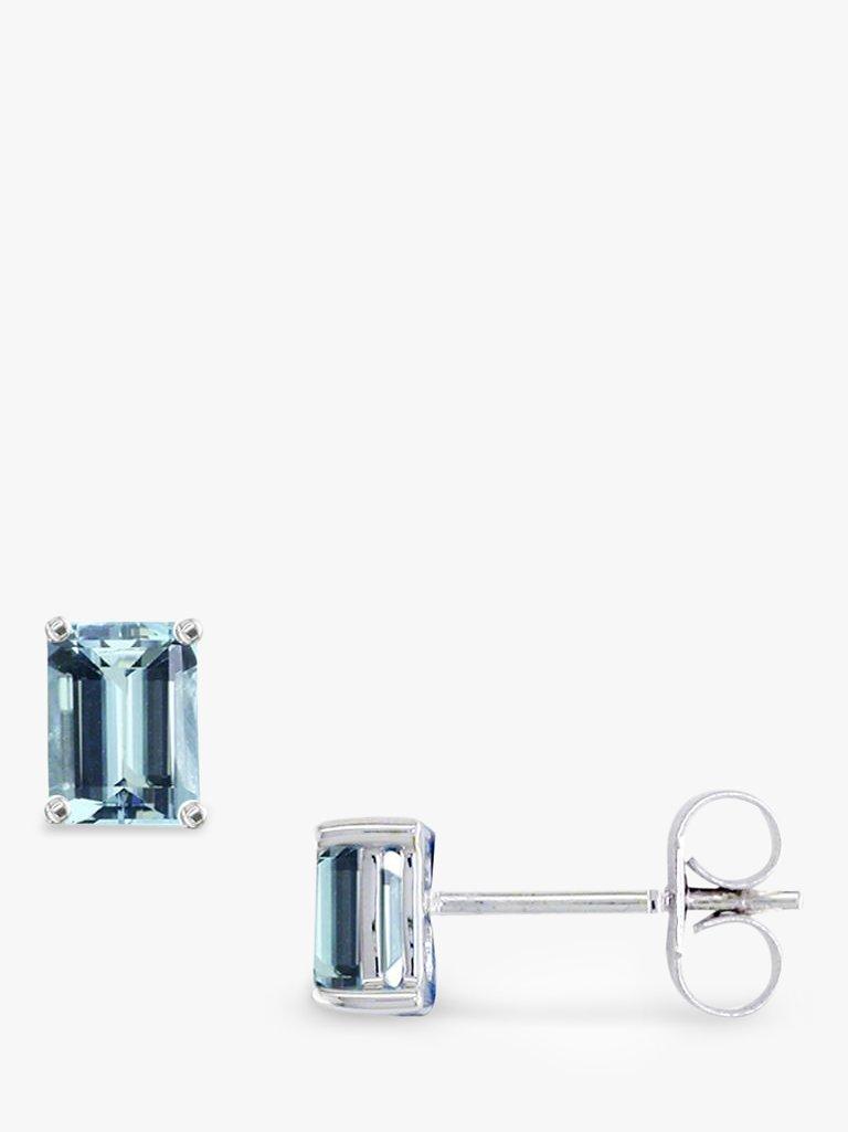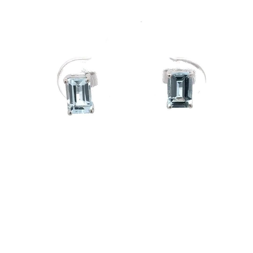 These delicate emerald cut stud earrings will beautifully reflect the light, as the cool aquamarine stones are held in their four claw, 9ct white gold setting. Mounted on a slim post with a butterfly fitting, each stone is approximately 6mm x 4mm.