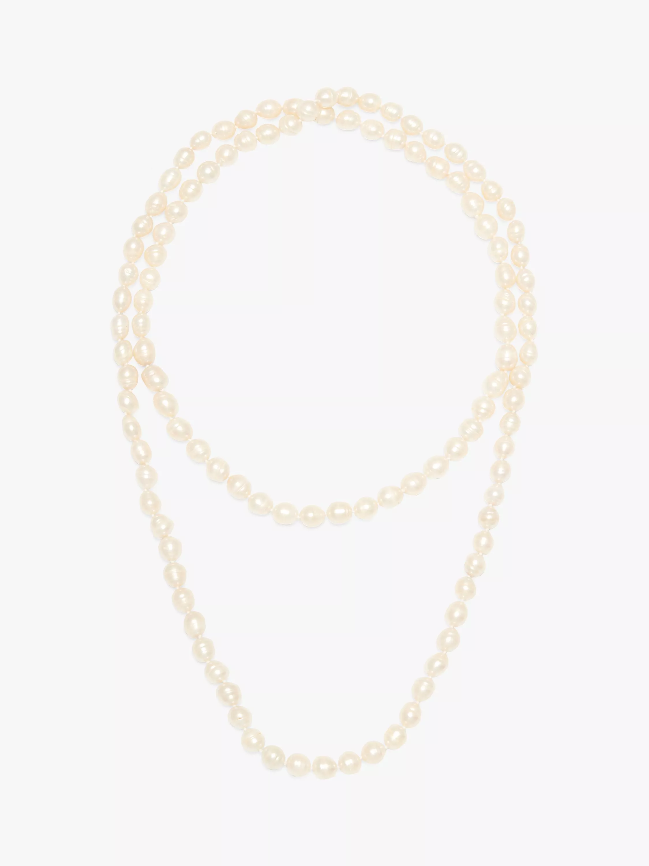 The necklace can be layered or alternatively tied in a knot thanks to its long and versatile length. The natural pears bring a lustrous touch to the look.