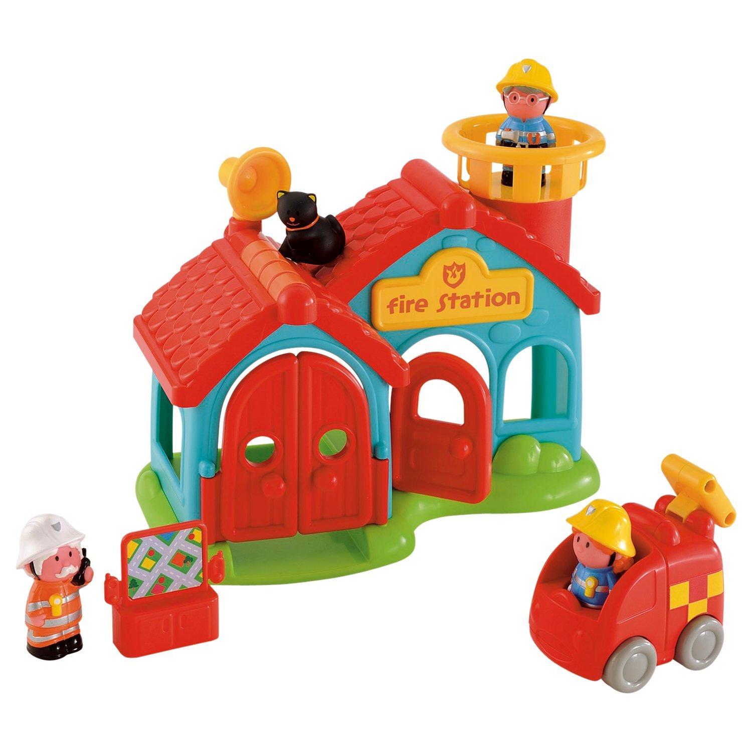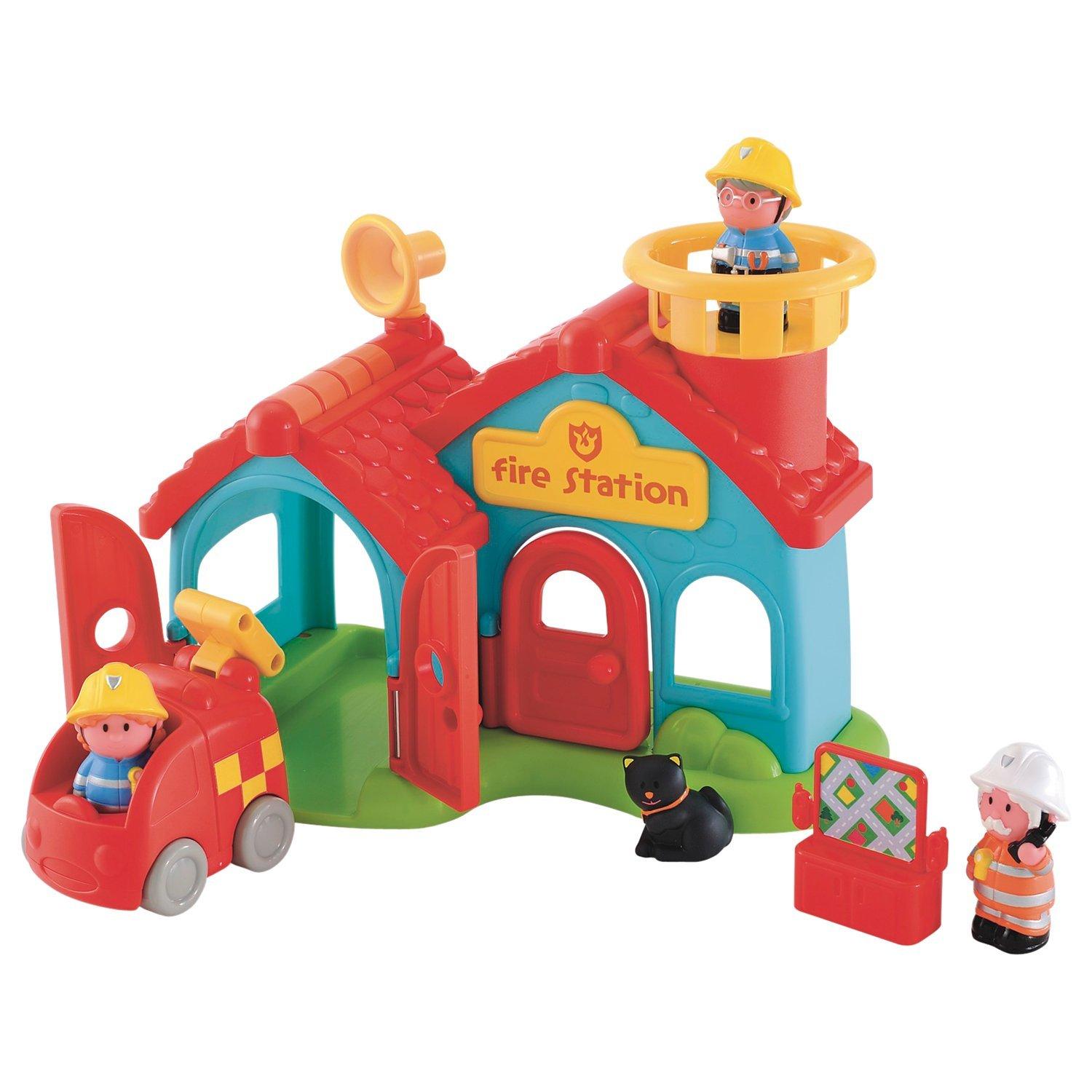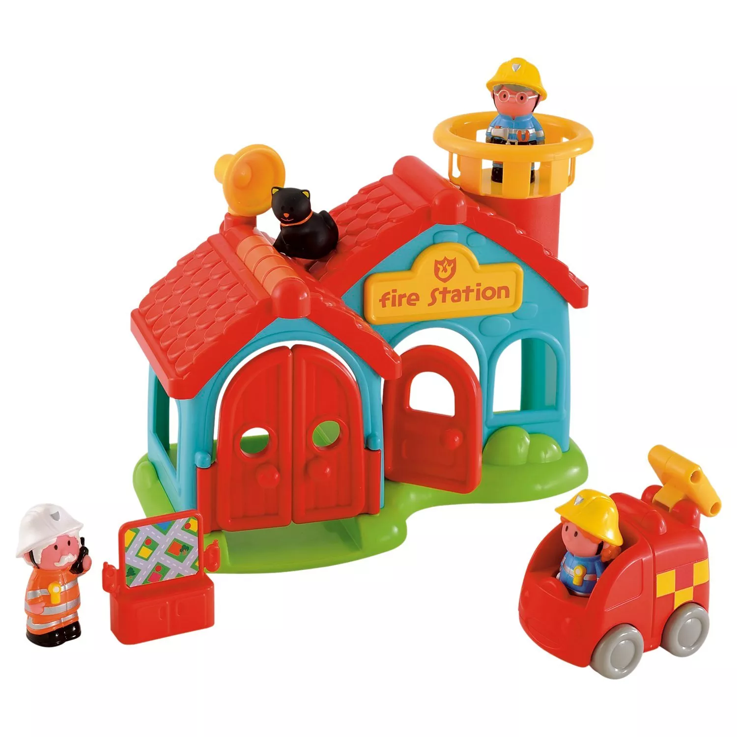 The ELC HappyLand Fire Station inspires pretend play and includes fire engine, 3 fire fighters, map and a cat.