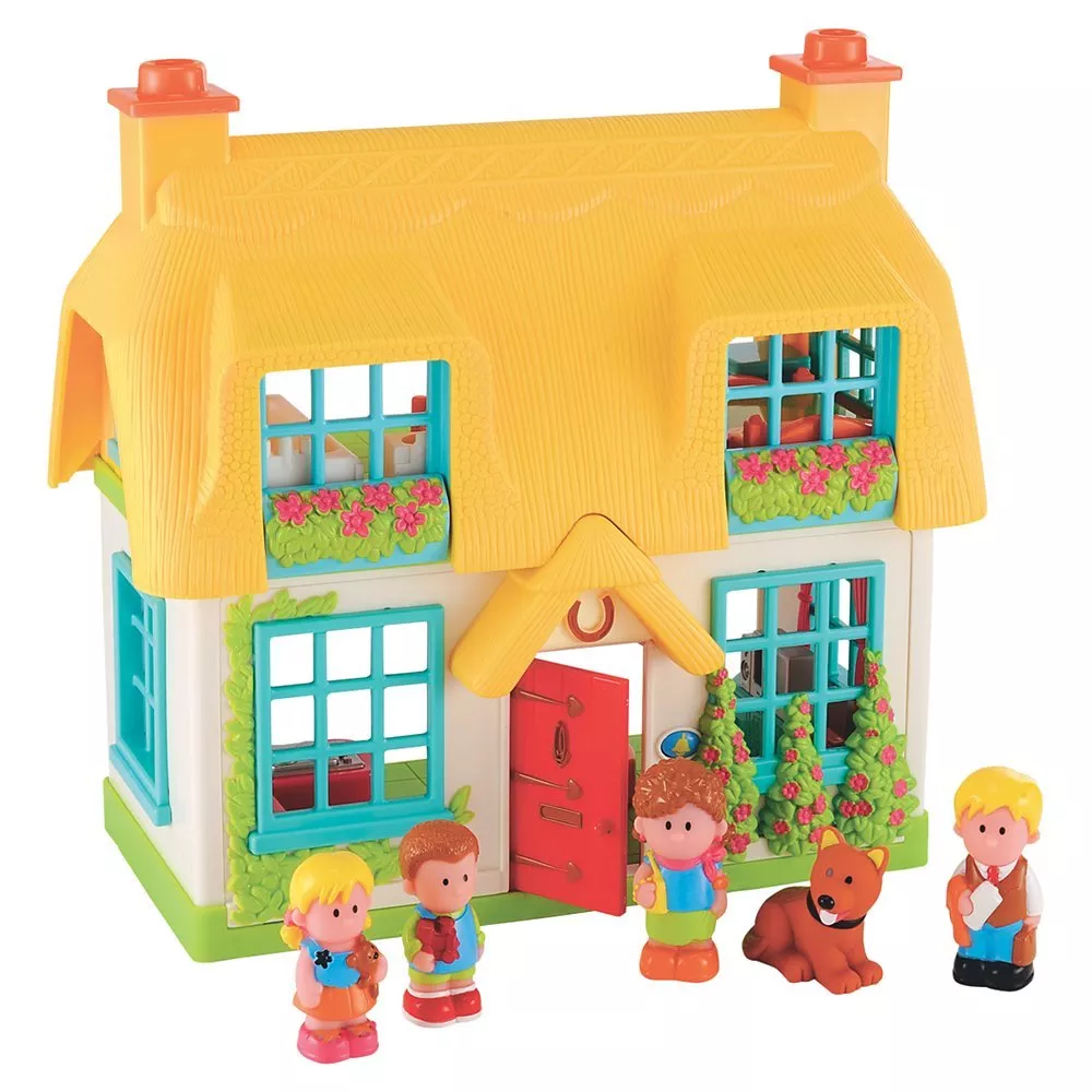The traditional cottage house comes with built-in furniture, a family, their super-cute dog, and loads of sound effects. This precious play set will spark imagination and creativity.