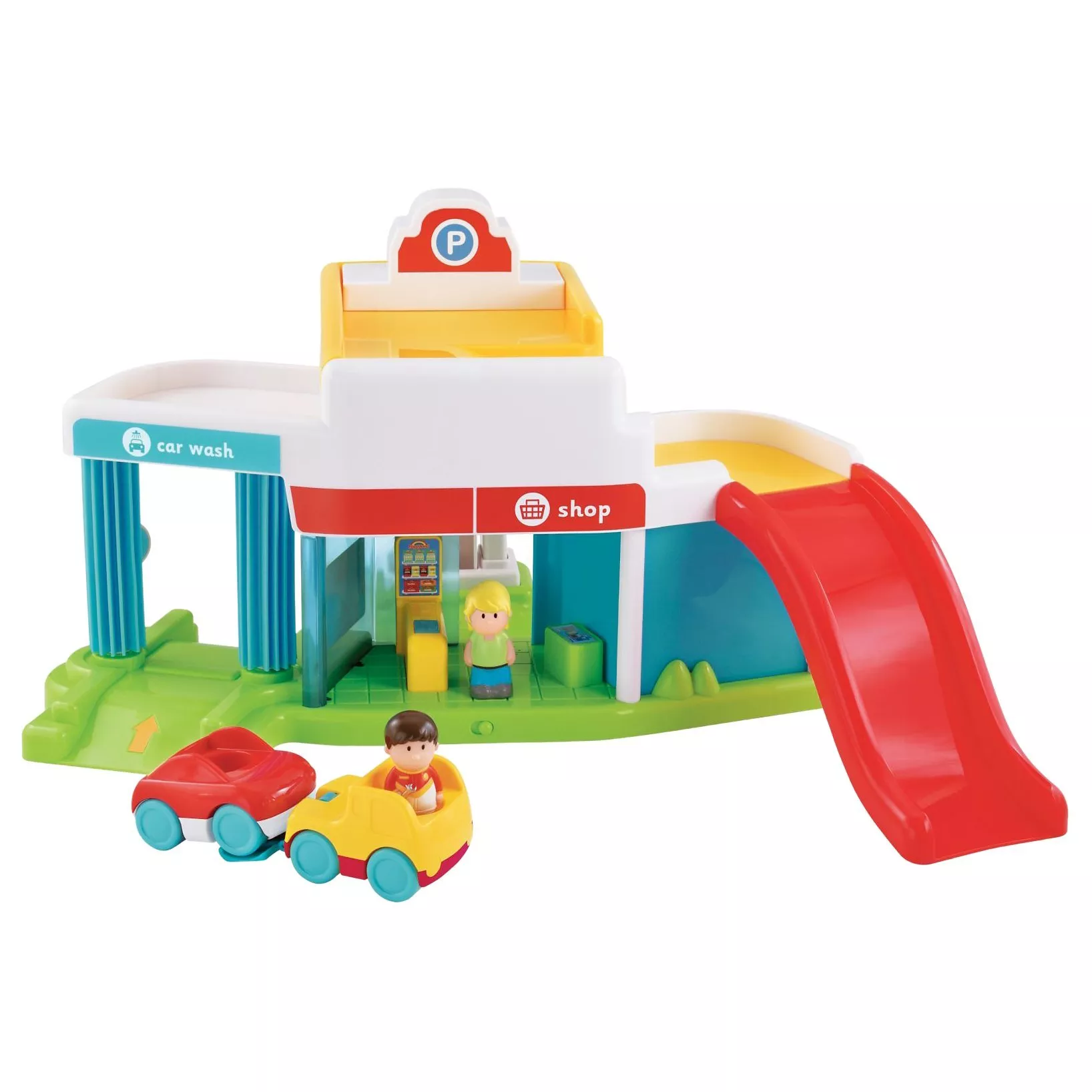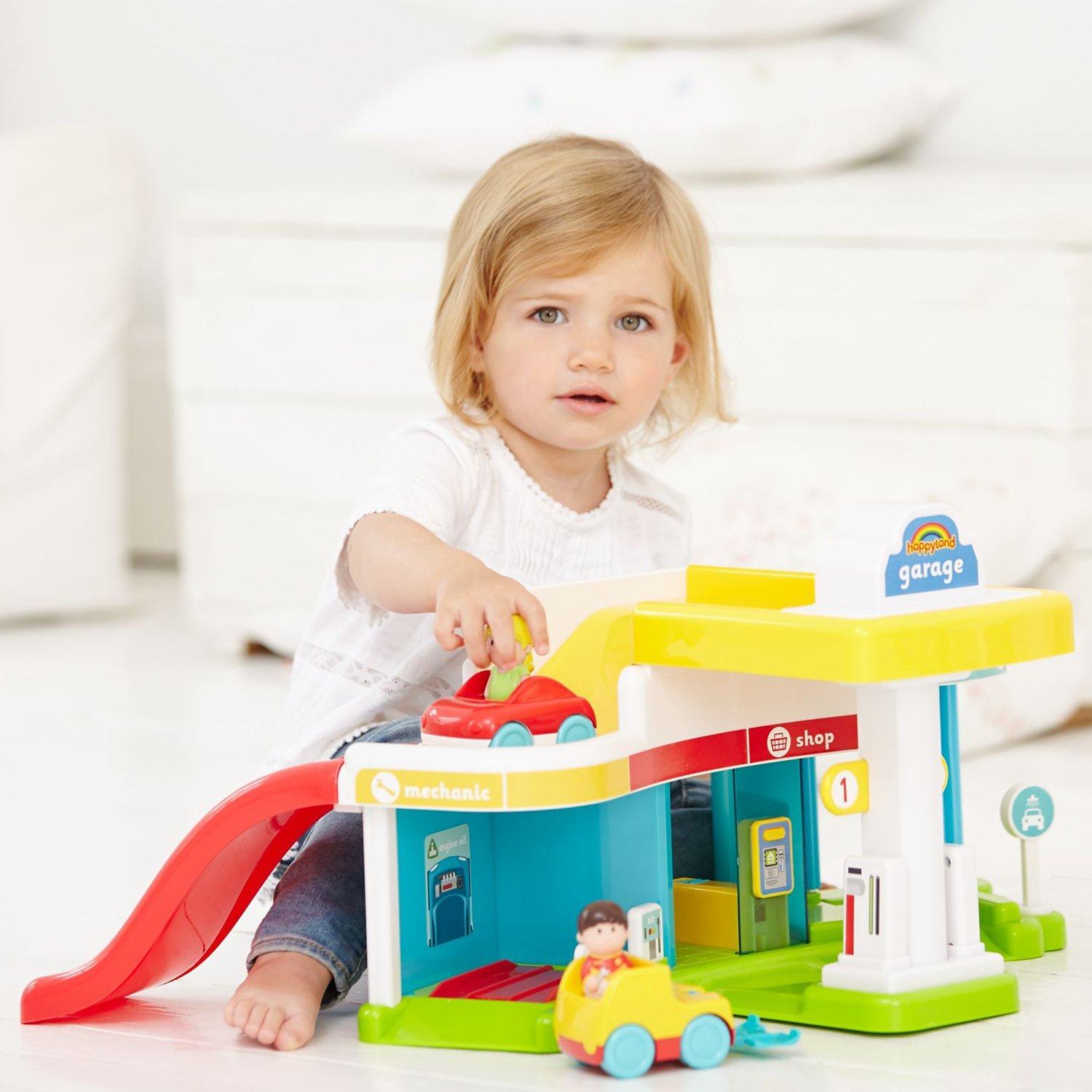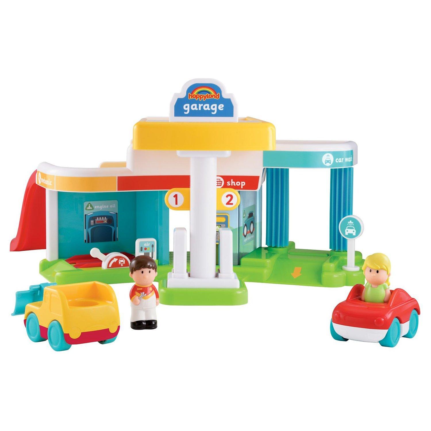 Fill up with petrol, go through the car wash, let the mechanic fix your engine, buy some food in the shop and drive up the ramp to the car park... the HappyLand Super Sounds garage from the Early Learning Centre contains hours and hours of imaginative play!