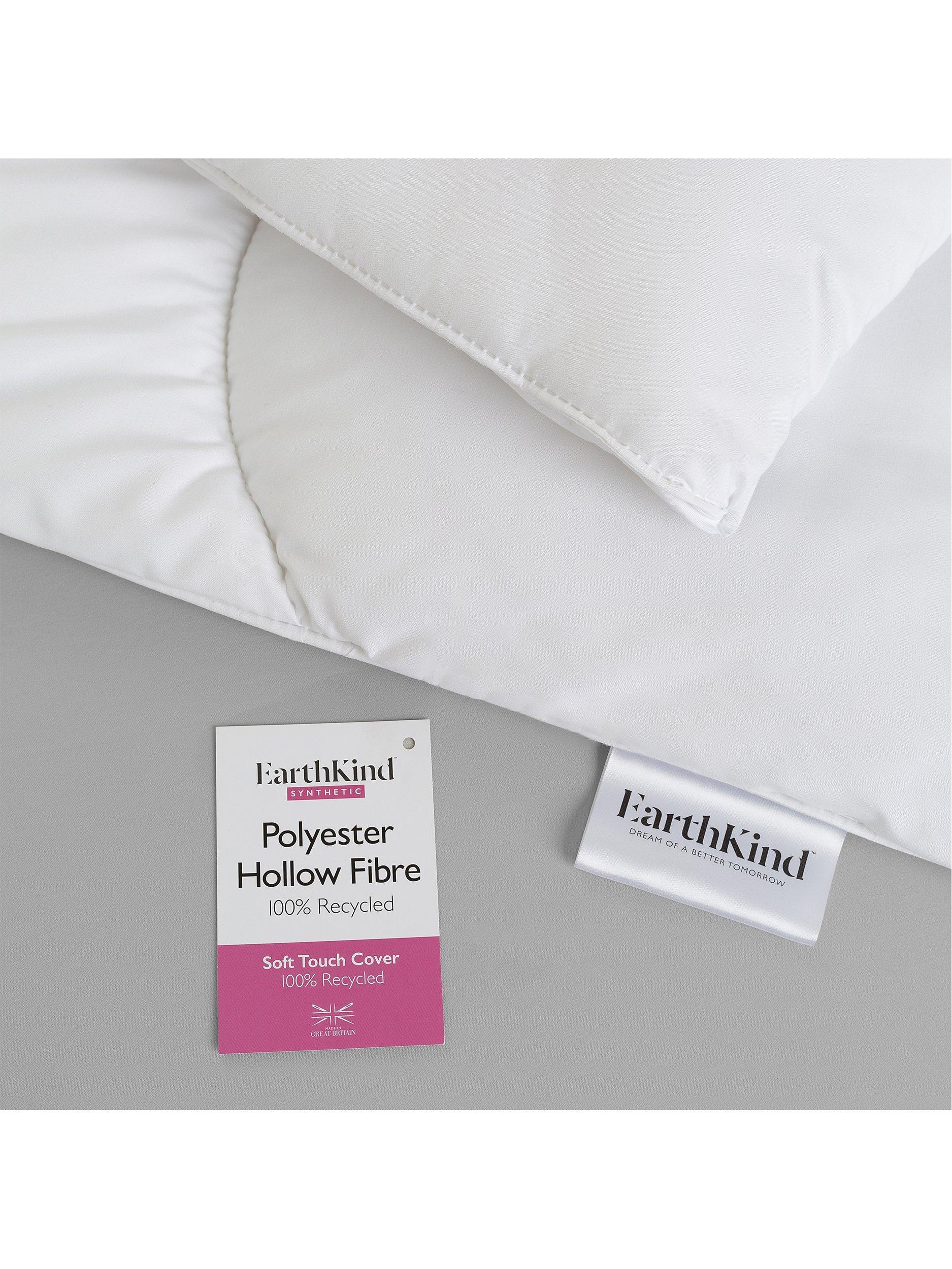 EarthKind use 100% recycled materials to create all synthetic duvets & pillows. Recycled polyester fibres are just as soft and as warm as non-recycled fibres. All Earthkind pillows and duvets are made in the UK, there is no plastic and they've designed the bag so you can keep it and use it for something new.