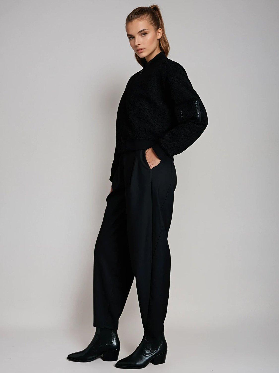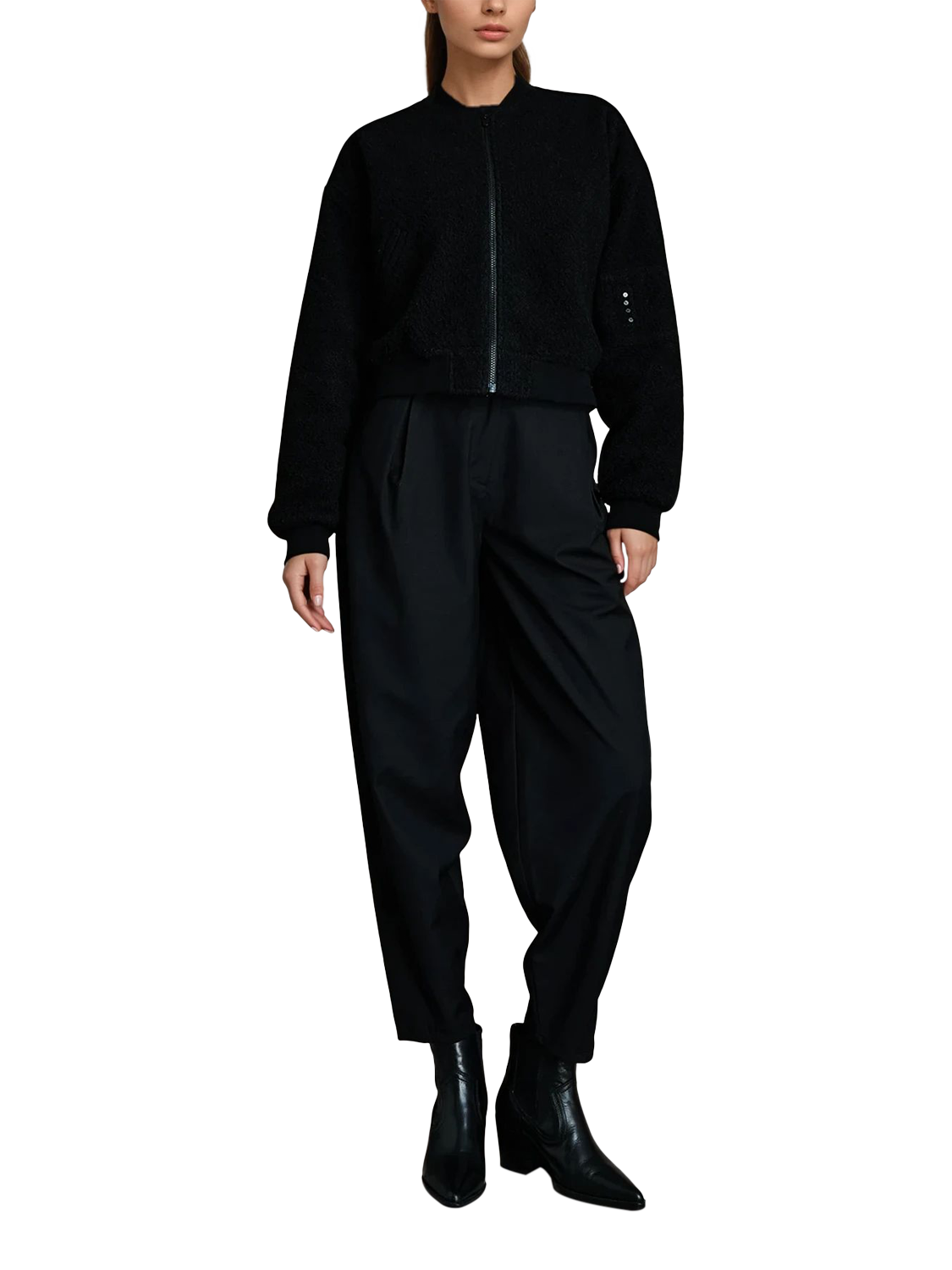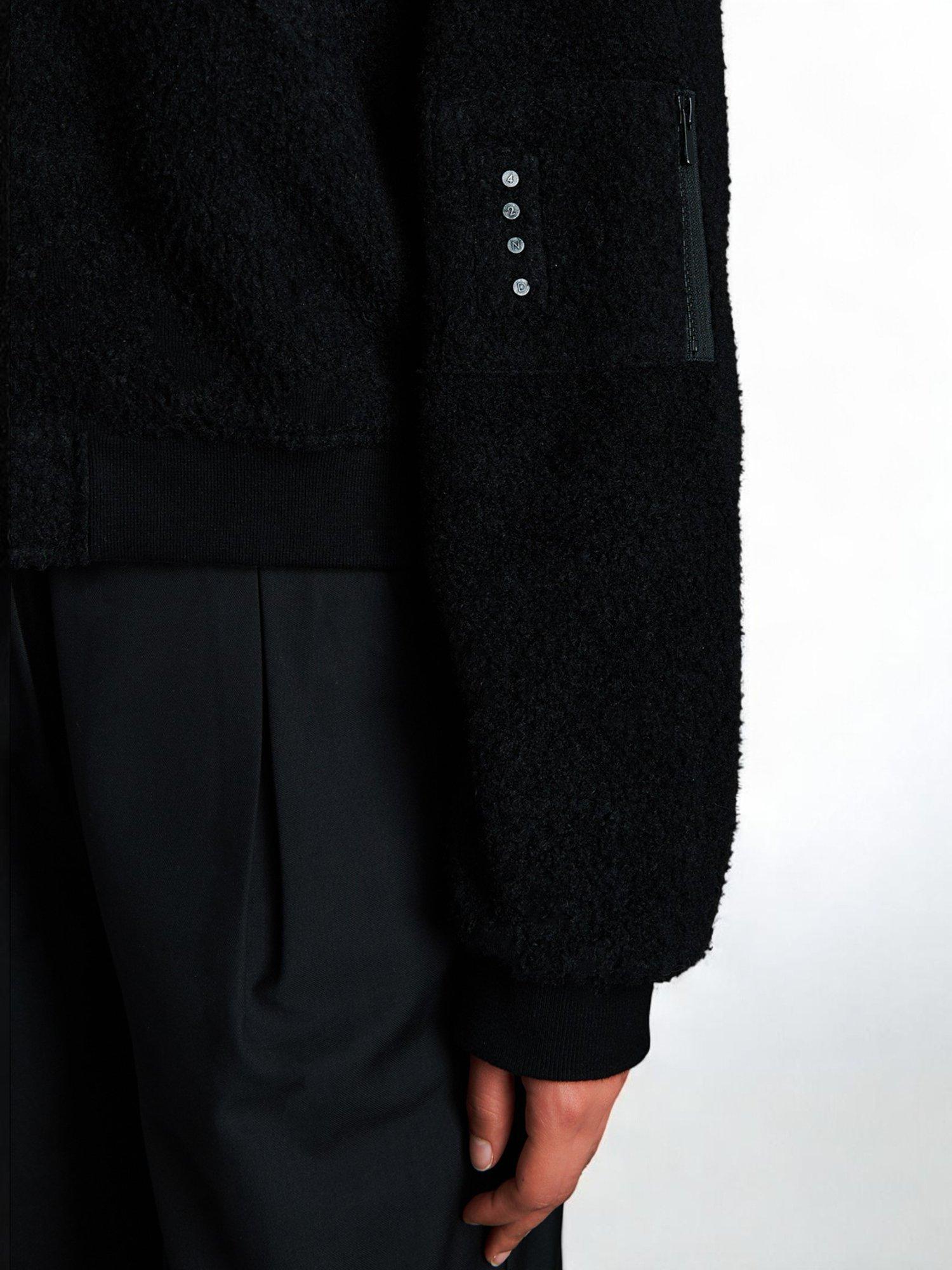 A signature EAST 42ND staple, this black bomber jacket is crafted from durable boucle fabric with a quilted inner for warmth and comfort.