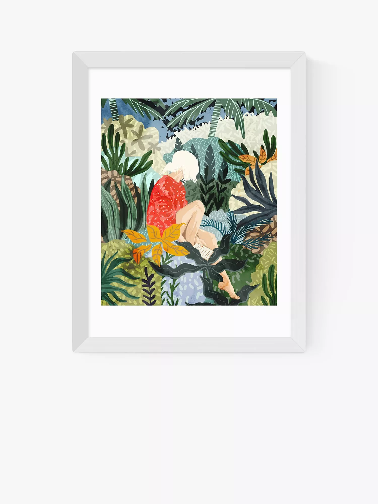 A colourful nature-inspired print, 'Distracted Reader' by 83 Oranges.